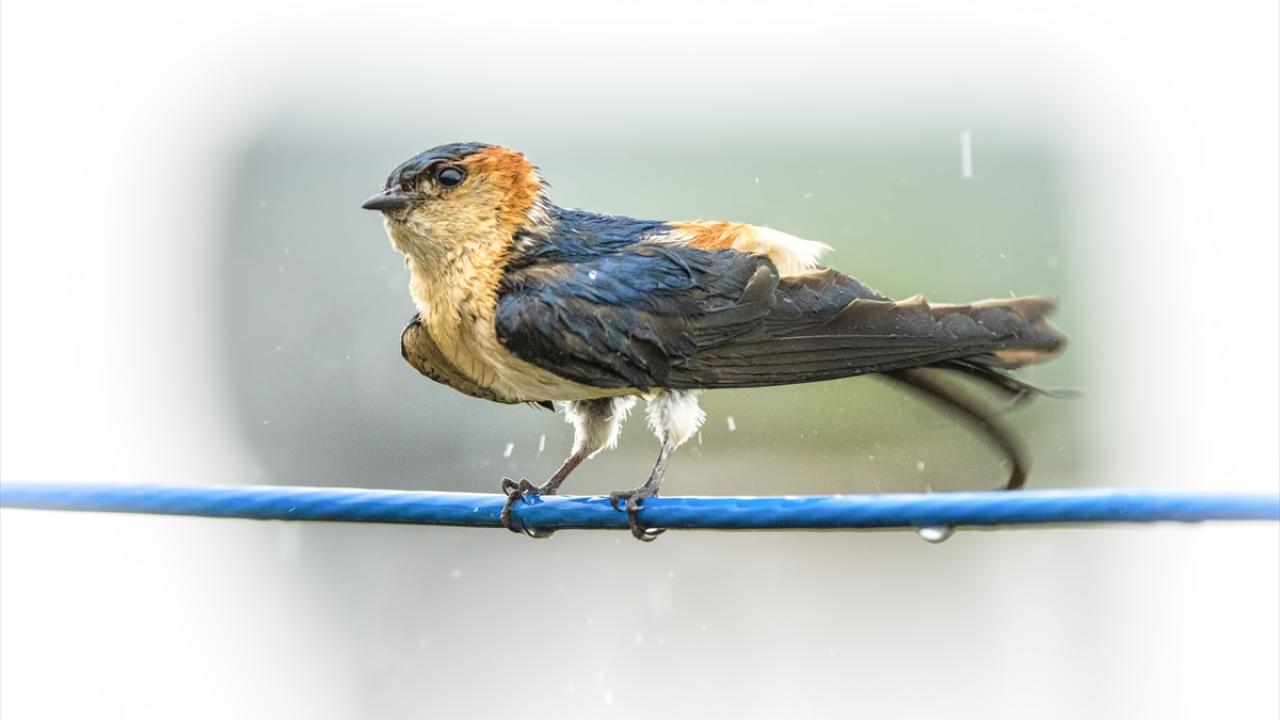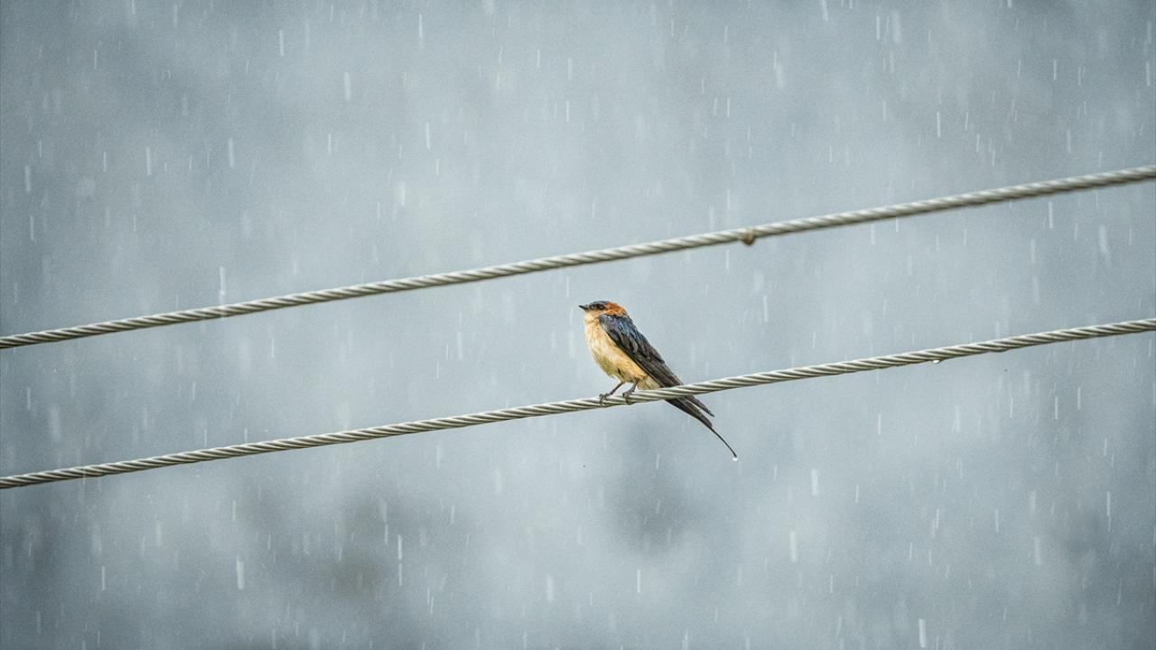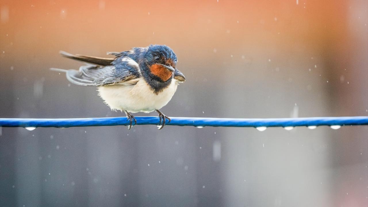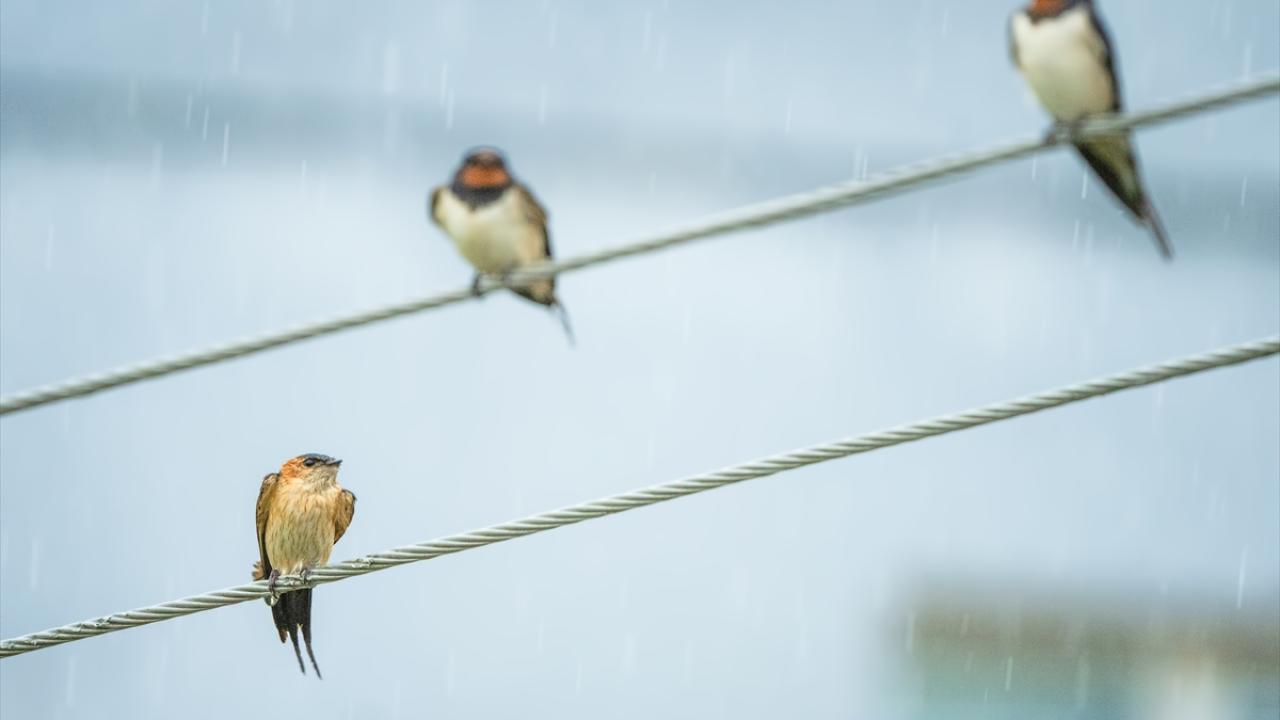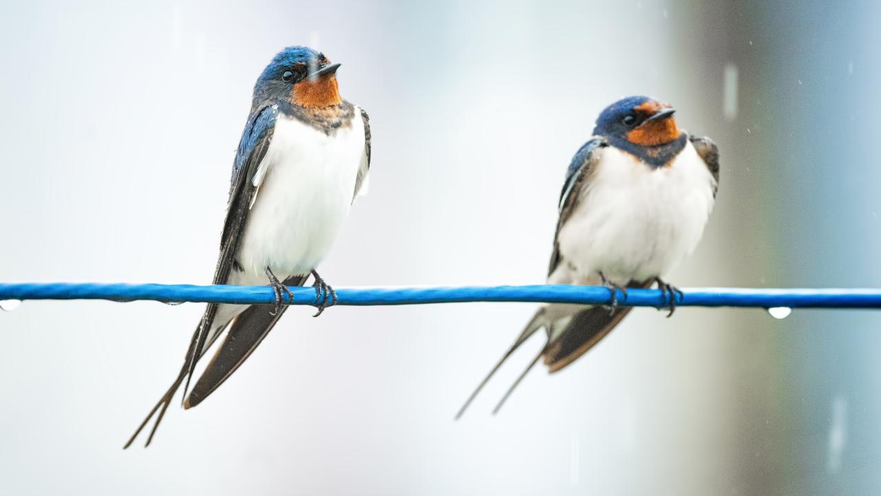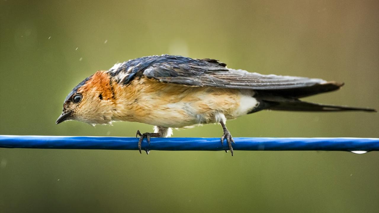 Dünyanın birçok bölgesinde görülebilen göçmen kuşlardan kırlangıçlar, tüylerini, kanatlarını da açarak yağmur suyuyla temizledi.
