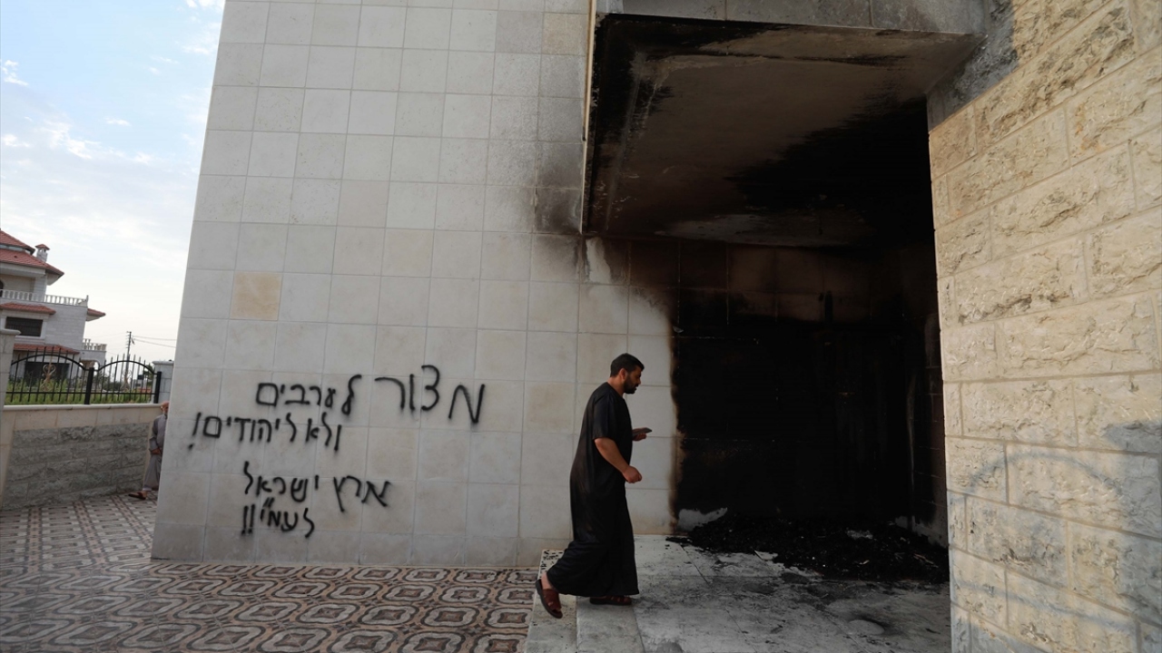 Caminin abdesthane bölümünün çıkan yangında zarar gördüğünü aktaran görgü tanıkları, Yahudi yerleşimcilerin caminin duvarlarına İbranice ırkçı sloganlar yazdığını belirtti.