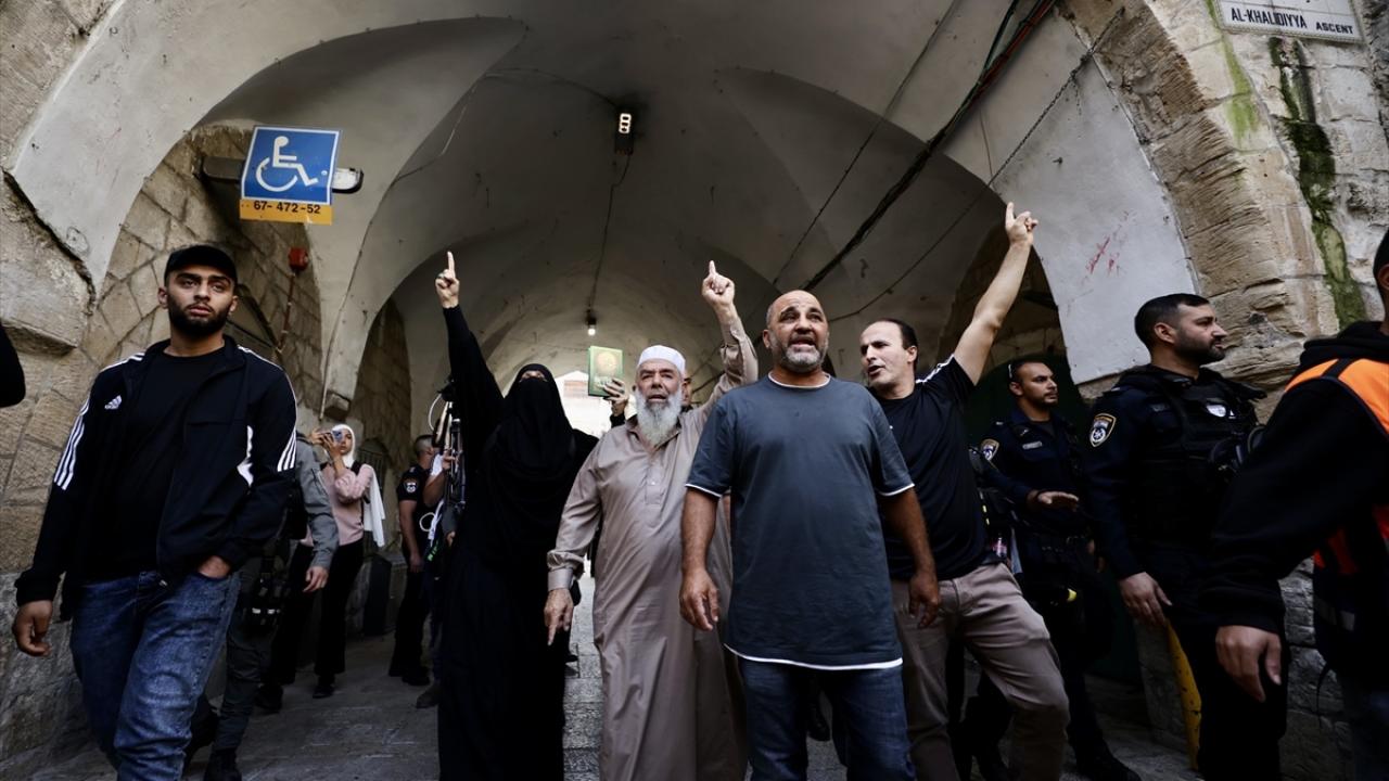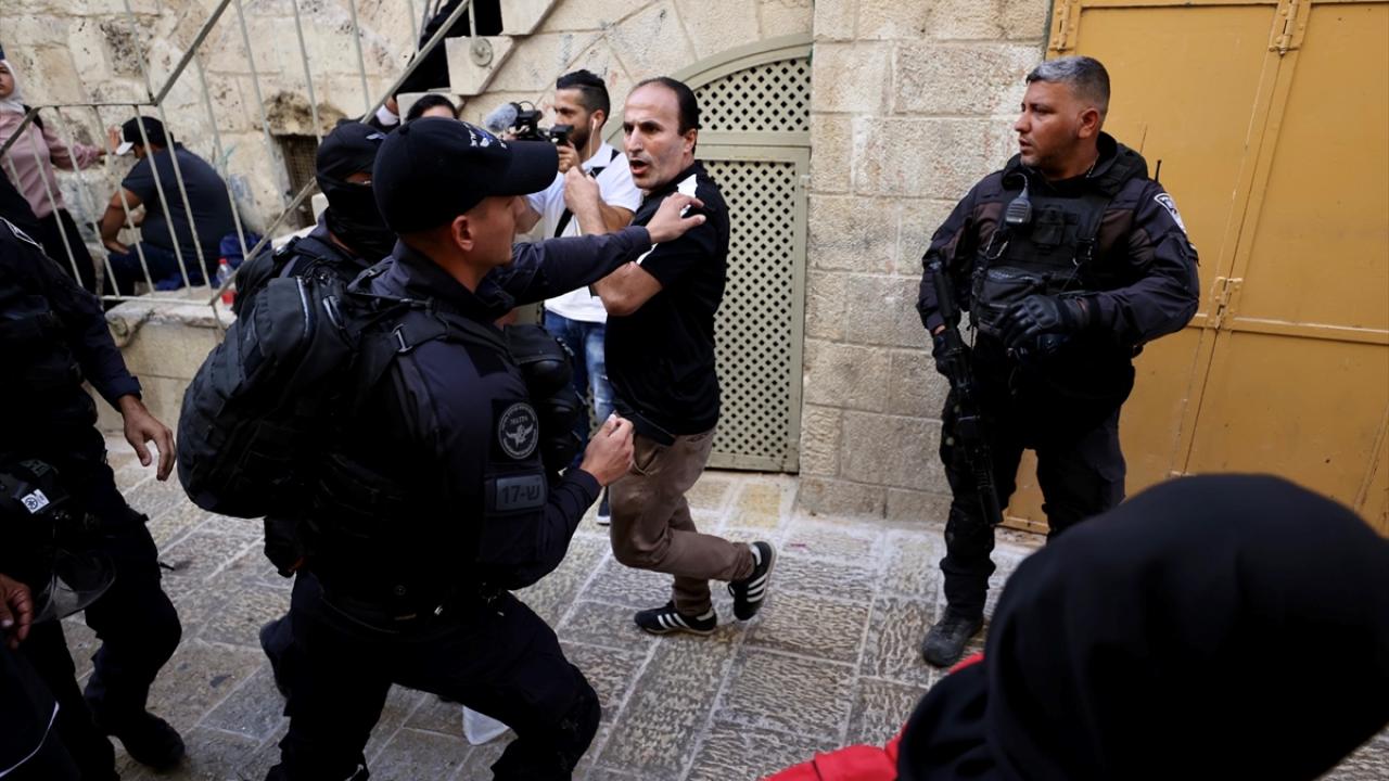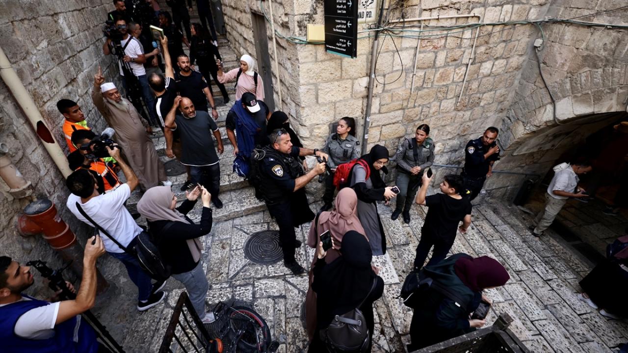 İsrail polisi, Eski Şehir bölgesinde toplanan ve Yahudi yerleşimcilerin kutsal mekana baskınlarını protesto eden Filistinlilere müdahale etti.