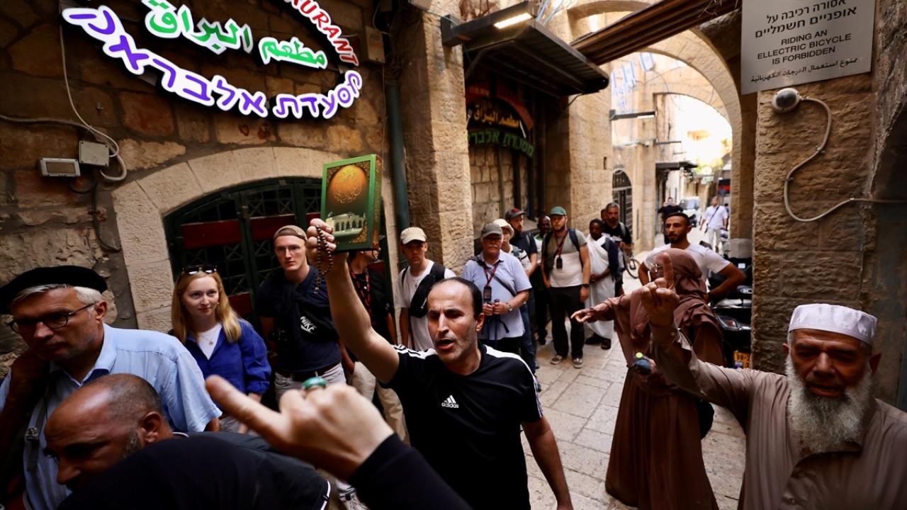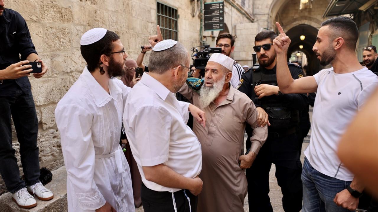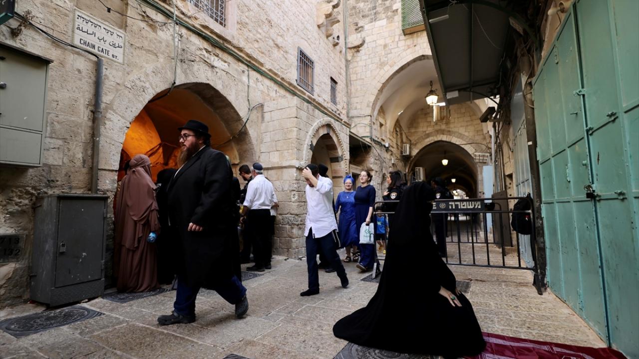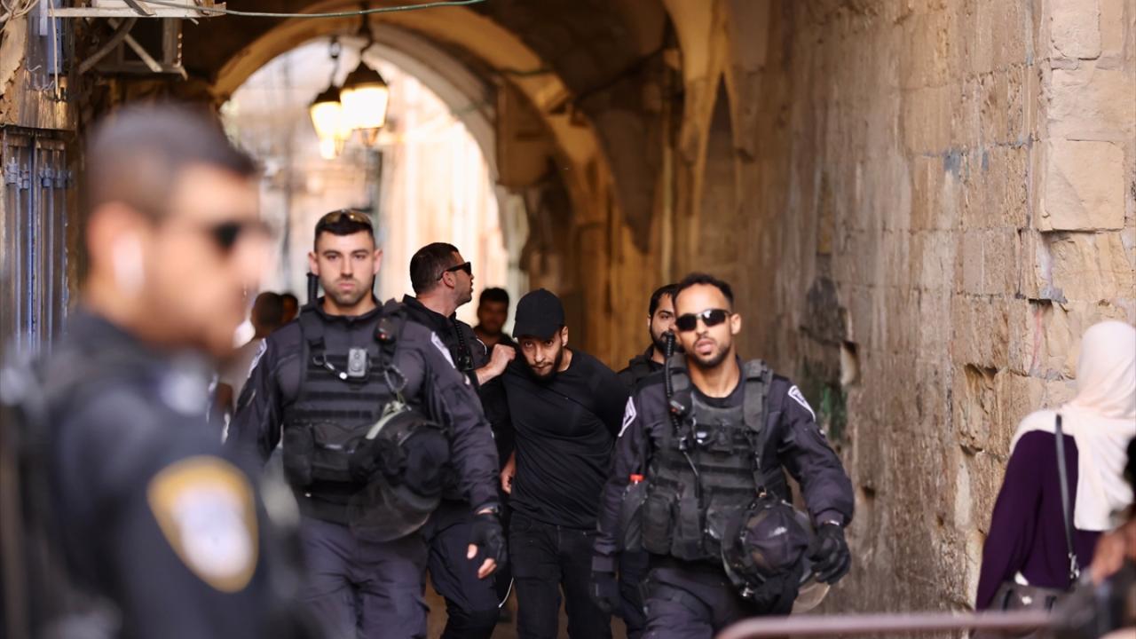 İsrail polisi, Eski Şehir bölgesinde toplanan ve Yahudi yerleşimcilerin kutsal mekana baskınlarını protesto eden Filistinlilere müdahale etti.