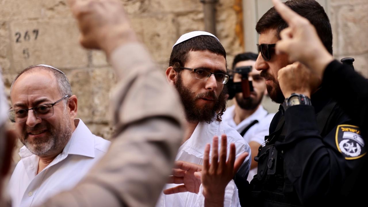 Mescid-i Aksa`nın farklı kapılarında toplanan ve tekbir getiren Filistinli gruplar da Yahudi yerleşimcilerin baskınlarını protesto etmeye devam etti.