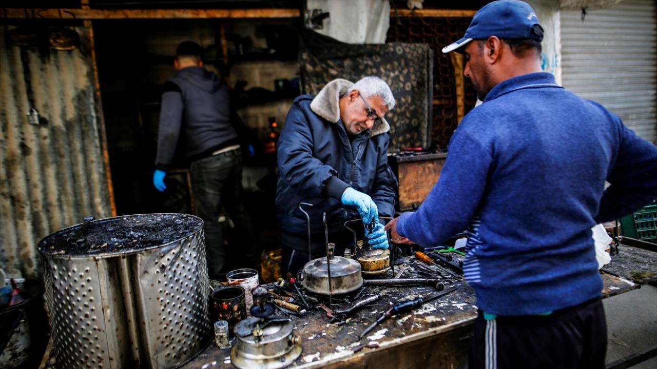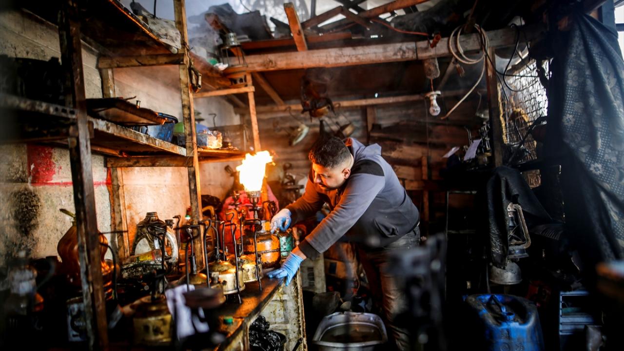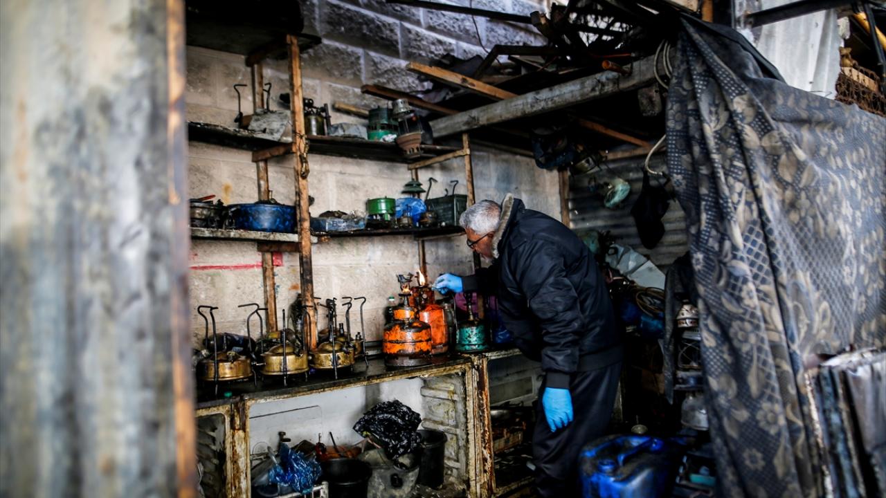 Gazze kentinin batısındaki Şati Mülteci Kampı’nda yaşayan 63 yaşındaki Hac Adil İsa, bölgedeki yakıt ve tüp gaz sıkıntısından ötürü talebin arttığı eski gaz yağı ocaklarını atölyesinde tamir ederek tekrar kullanılır hale getiriyor.