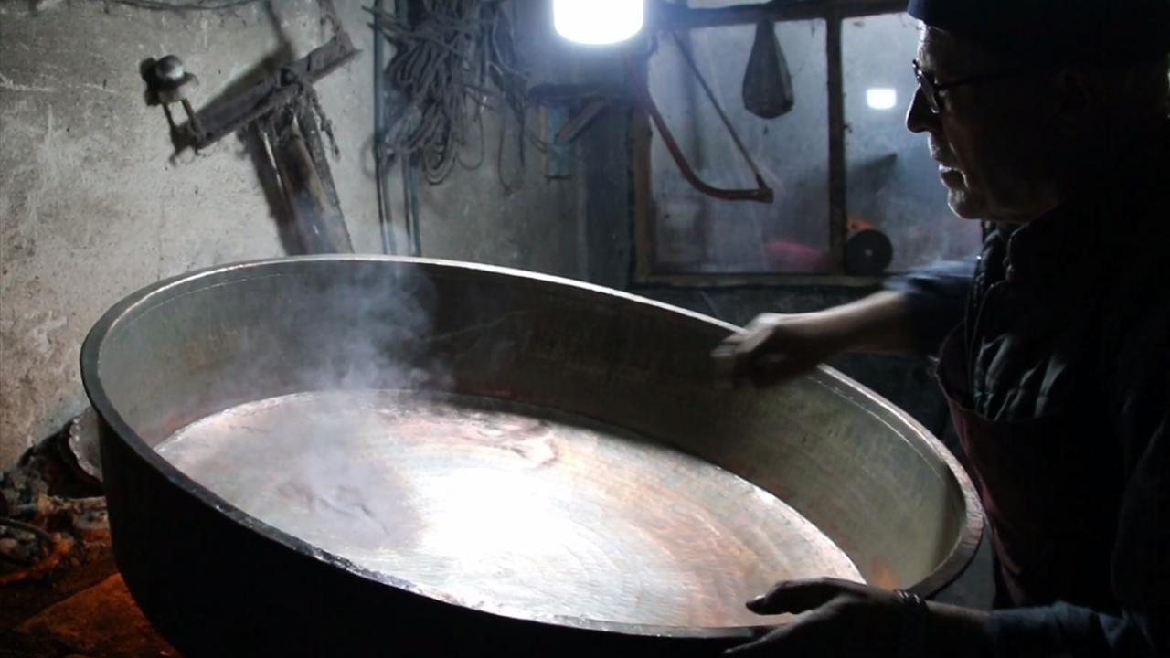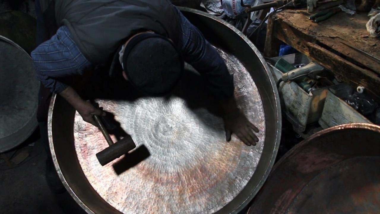 "Artık alüminyum, çelik, plastik, granit, teflon gibi birçok çeşit olduğu için mutfaklarda bakır eşya kullanımı azaldı. Bu yüzden bu işi yapan kalmadı. Kırşehir ve Kırıkkale`den bana iş geliyor. En fazla bağ leğeni dediğimiz pekmez kaynatmak için kullanılan büyük leğen getiriliyor. Kazan gibi büyük eşyalar da getiriliyor. Tabak gibi küçük eşyalar artık kalmadı."