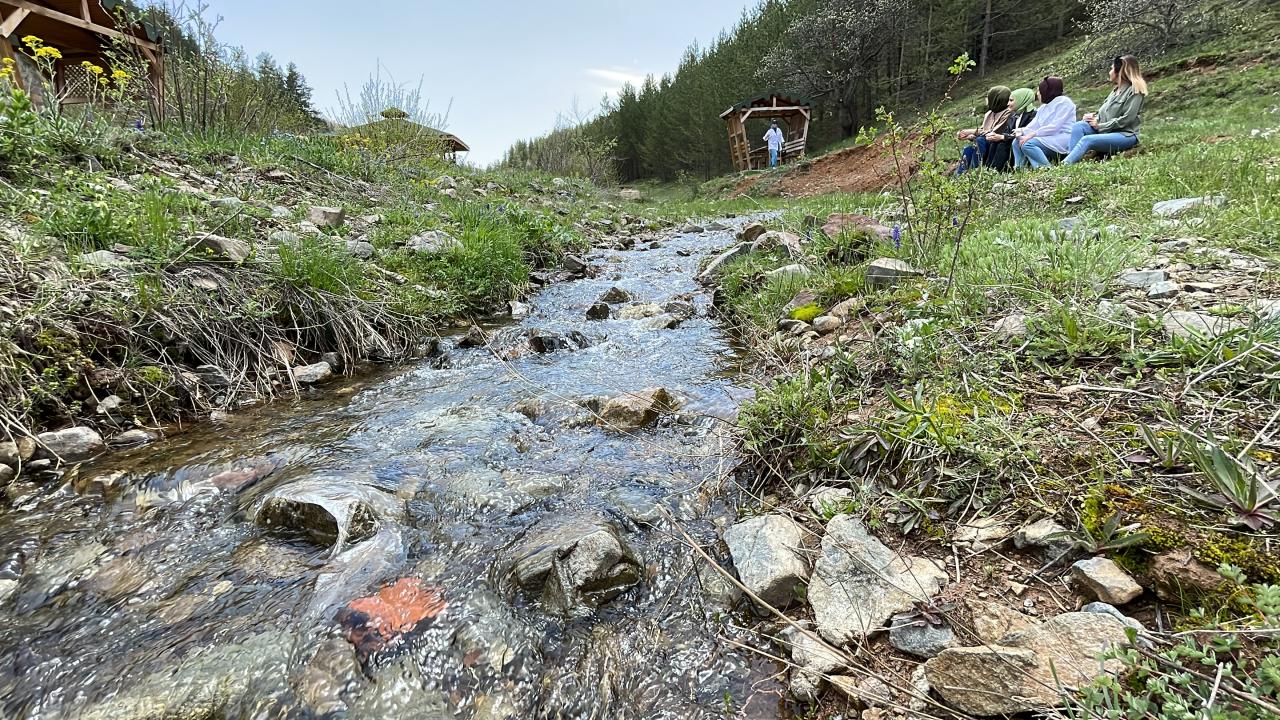Tabiat parkını ziyaret eden doğaseverler, temiz hava ve görsel zenginlik eşliğinde gölet çevresinde gezintiye çıkarken, kuş cıvıltıları ve kurbağa sesleri eşliğinde doğal ortamın tadını çıkartıyor.