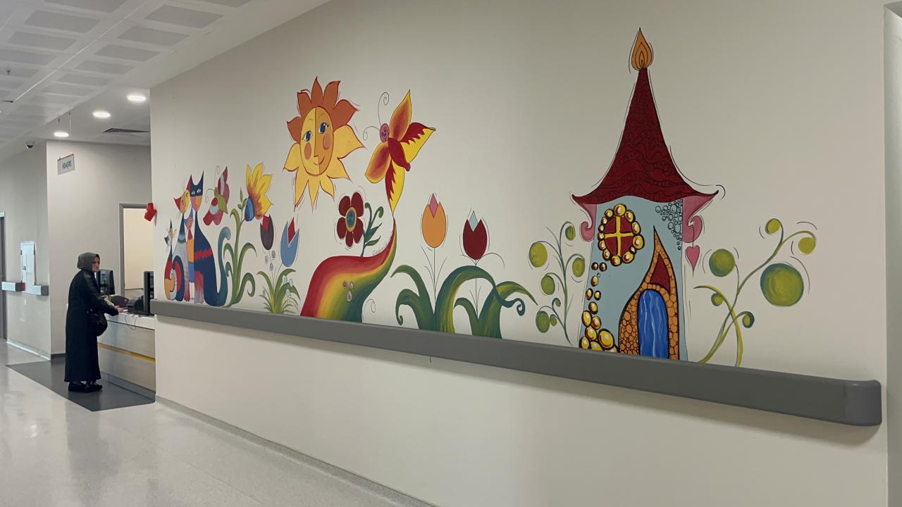 Öğretmen Esma Özgür, tamamladıkları eserlerin yanı sıra duvarlara hastalar üzerinde olumlu etkileri kanıtlanmış resimler yapacaklarını bildirdi.