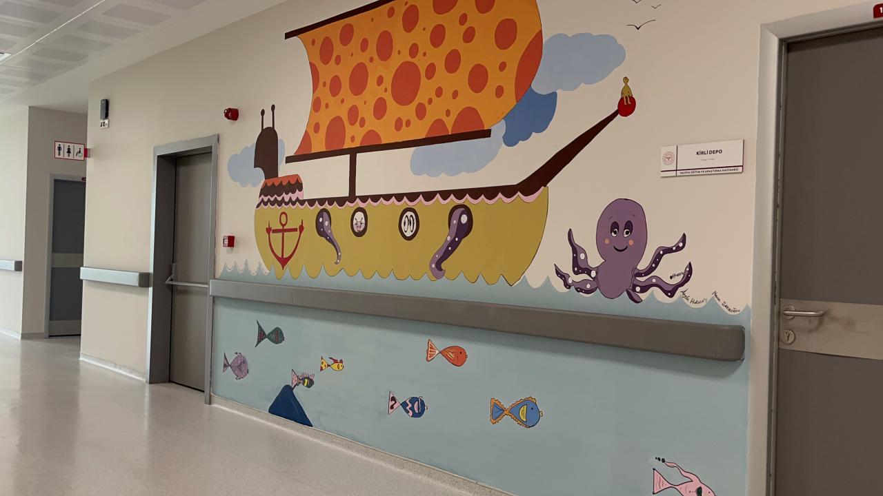 Yalova Güzel Sanatlar Lisesi'nin gönüllü öğrencileri, Yalova Eğitim ve Araştırma Hastanesinin koridorlarının duvarlarını, sanatın iyileştirici gücünden esinlenerek çeşitli masal ve çizgi film karakterlerinin resimleriyle donatıyor.