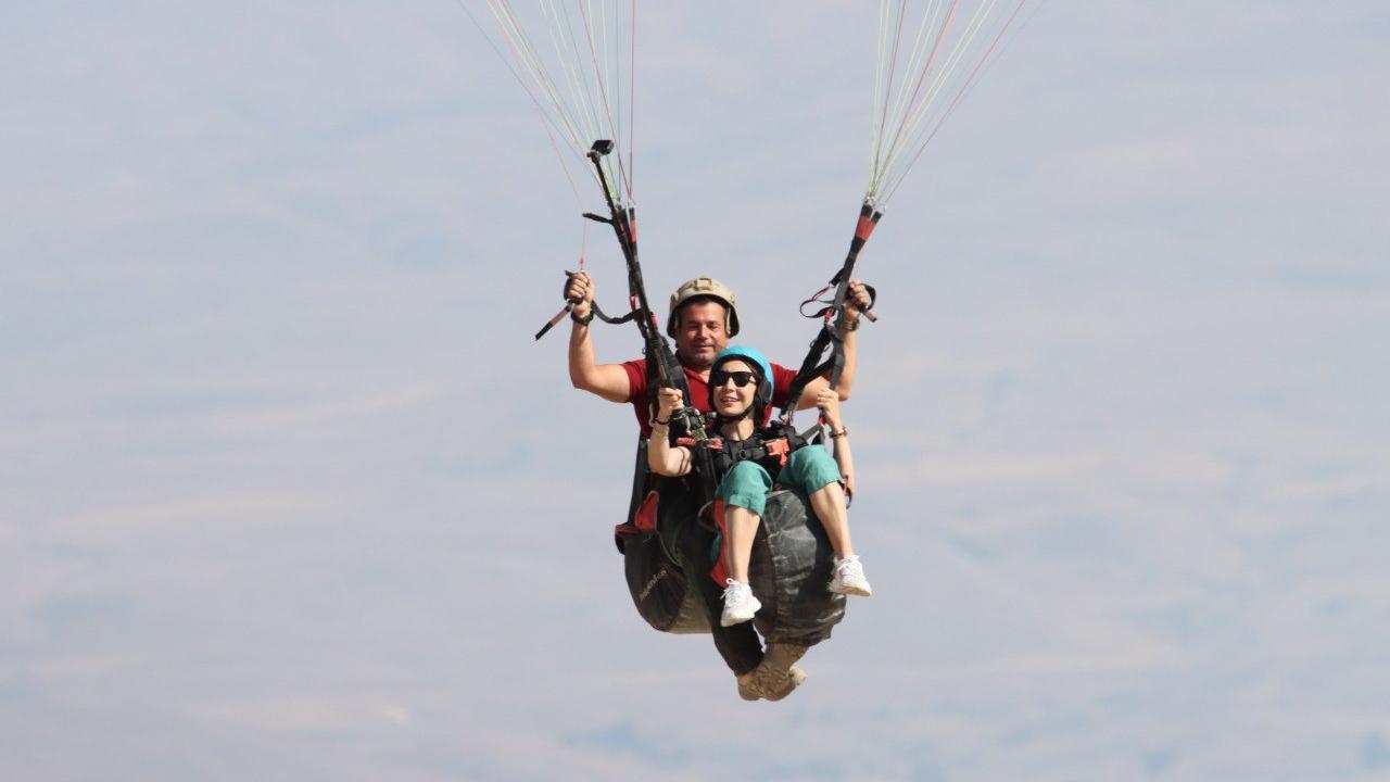 Karaloğlu, yaptığı açıklamada Çelebibağı Mahallesi`ndeki Madavank Tepesi`nden yamaç paraşütü uçuşu gerçekleştirdiklerini söyledi.