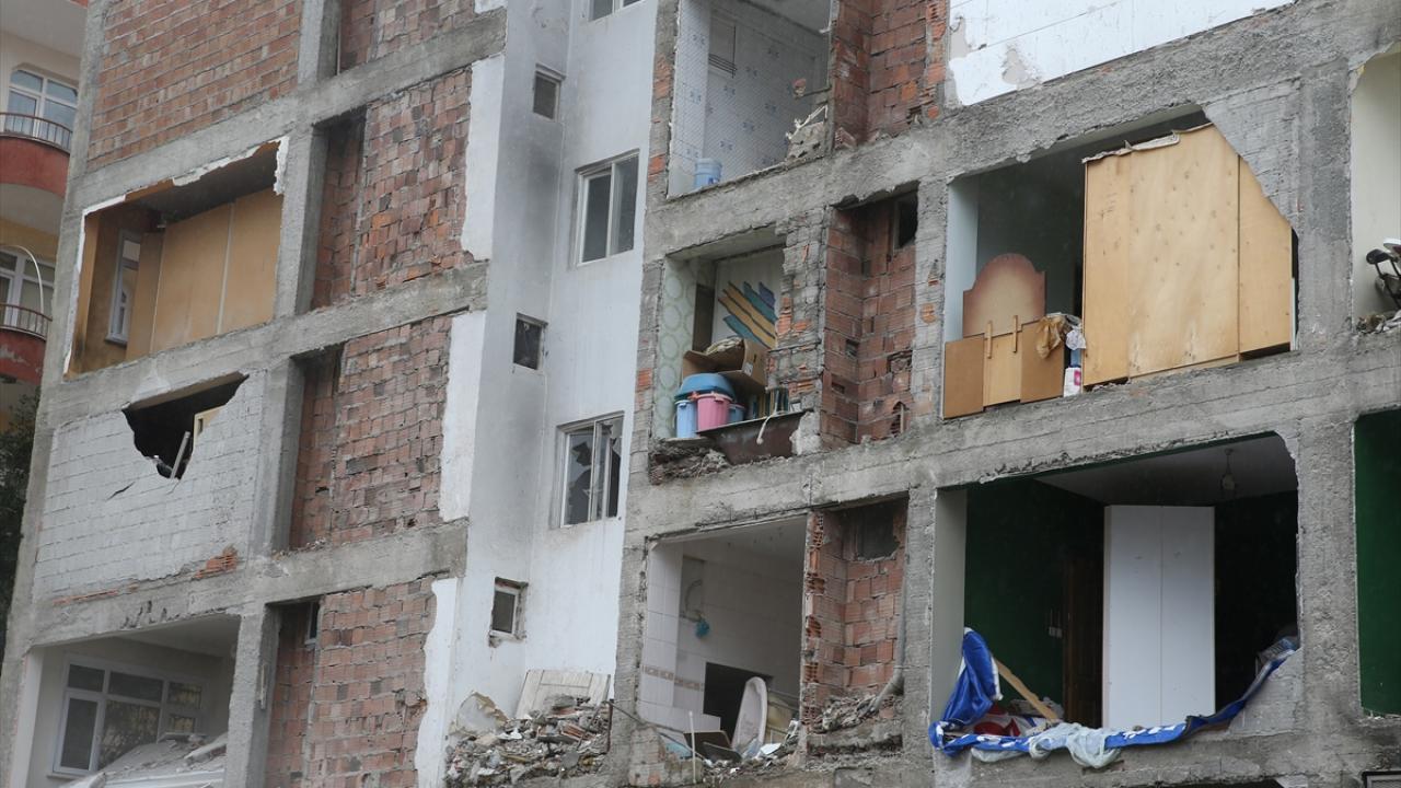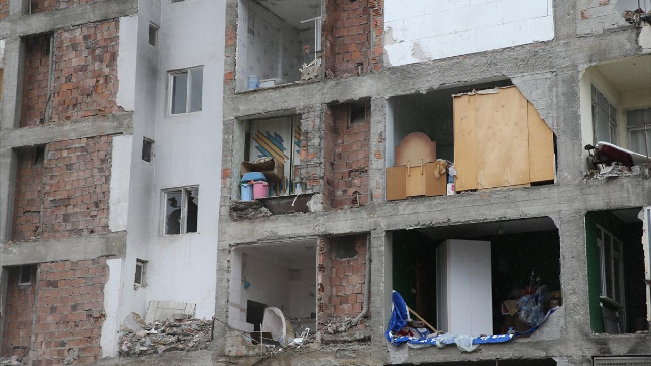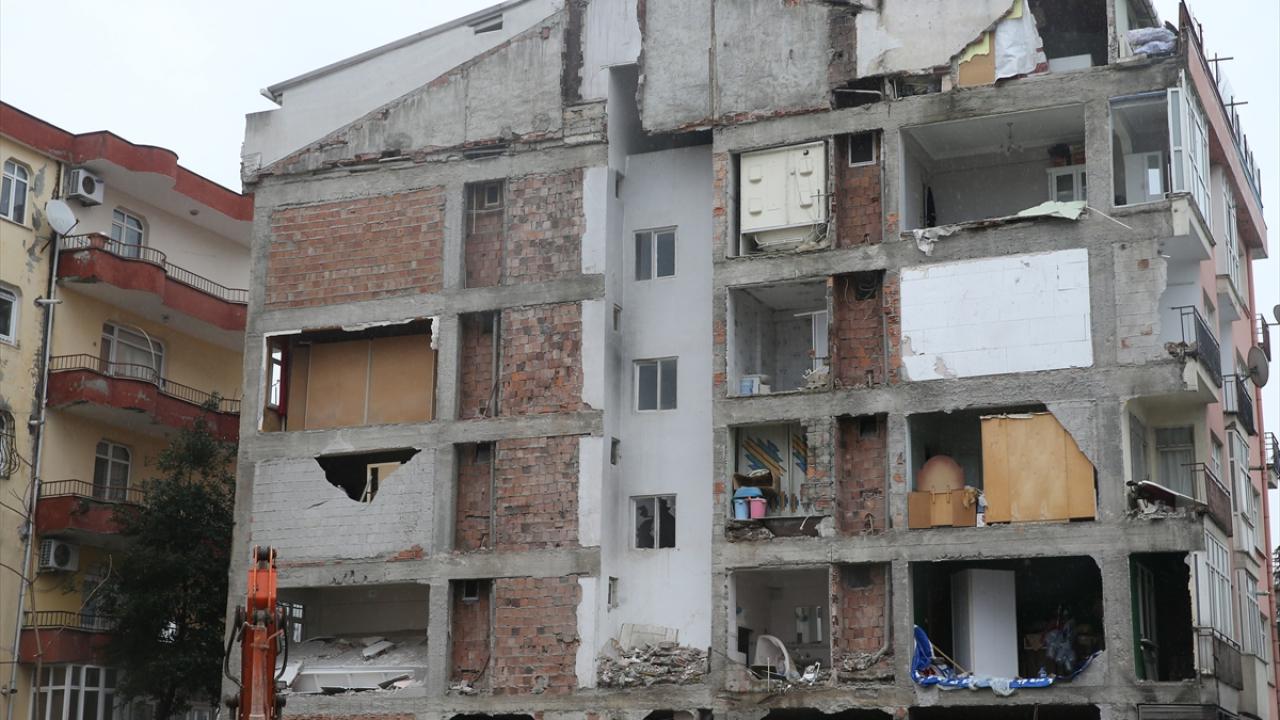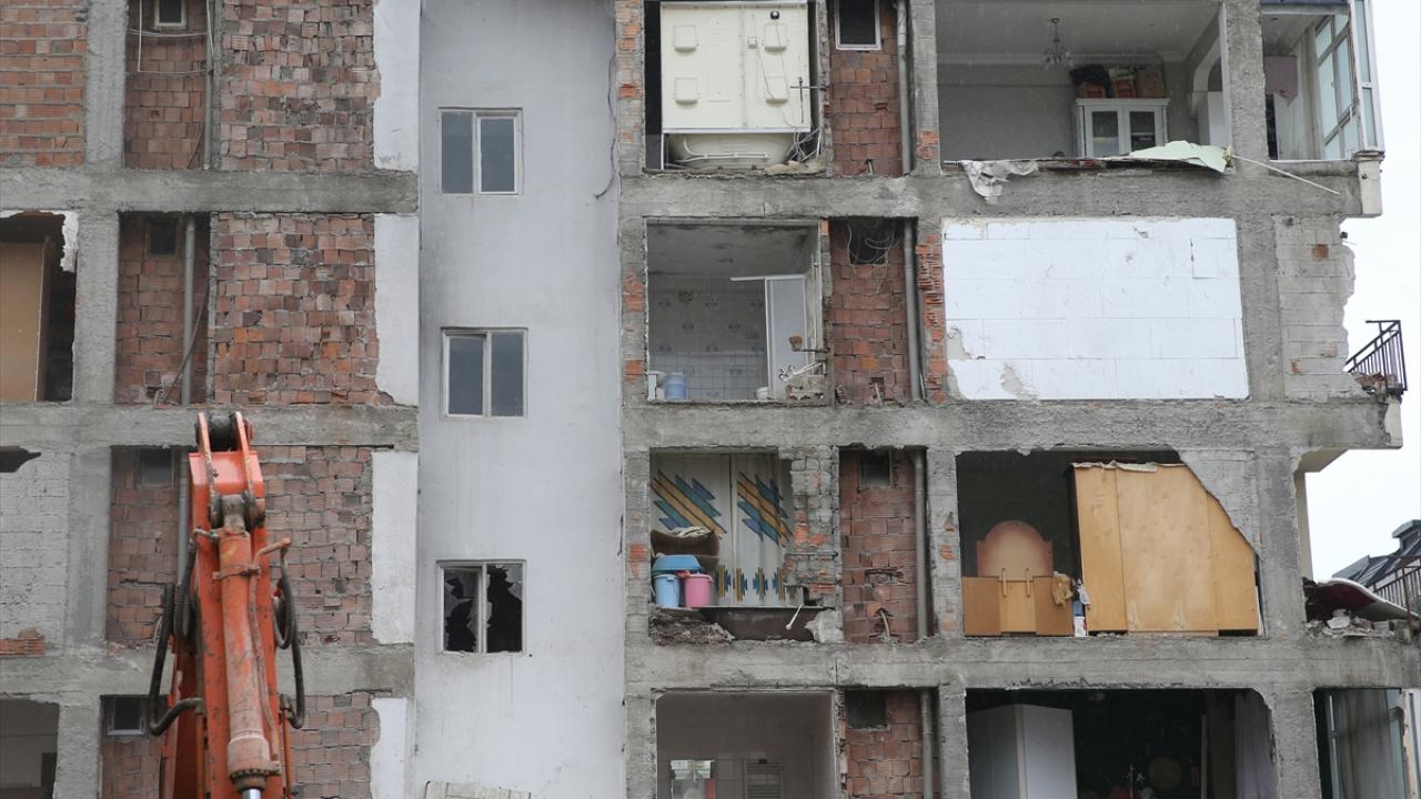 Bir cephesi tamamen açıkta kalan apartman, görevlilerce tahliye edildi.