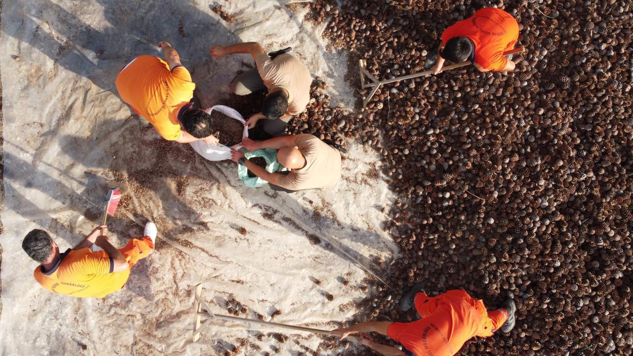 Elde edilen tohumların bir bölümü yangında yok olan bin hektarlık alana, diğer kısmı ise 2 bin hektarlık gençleştirme sahasında toprakla buluşacağı belirtildi.