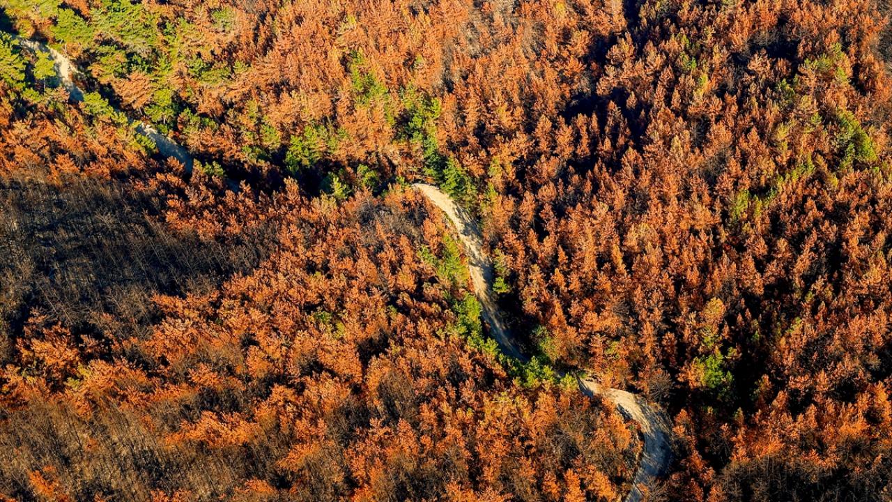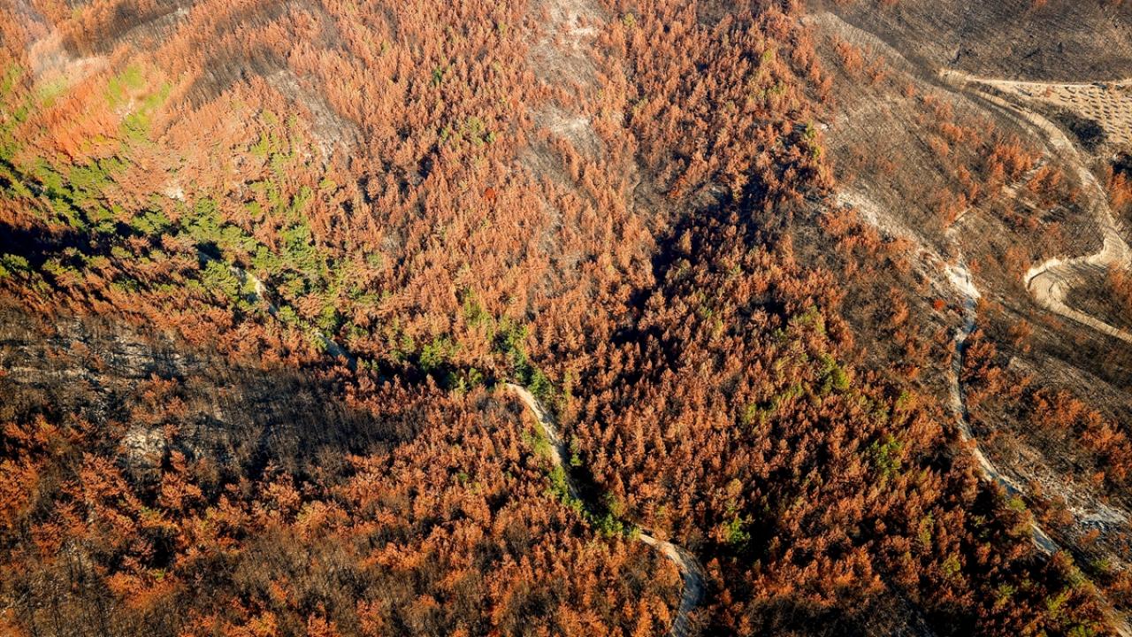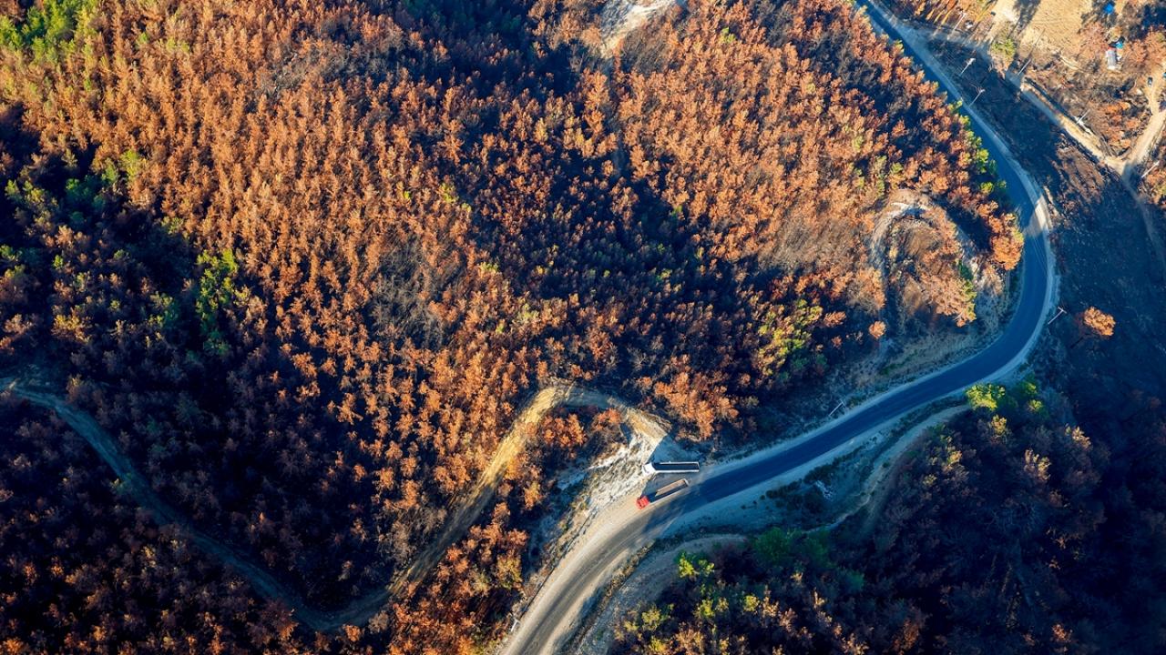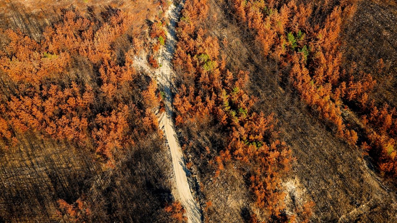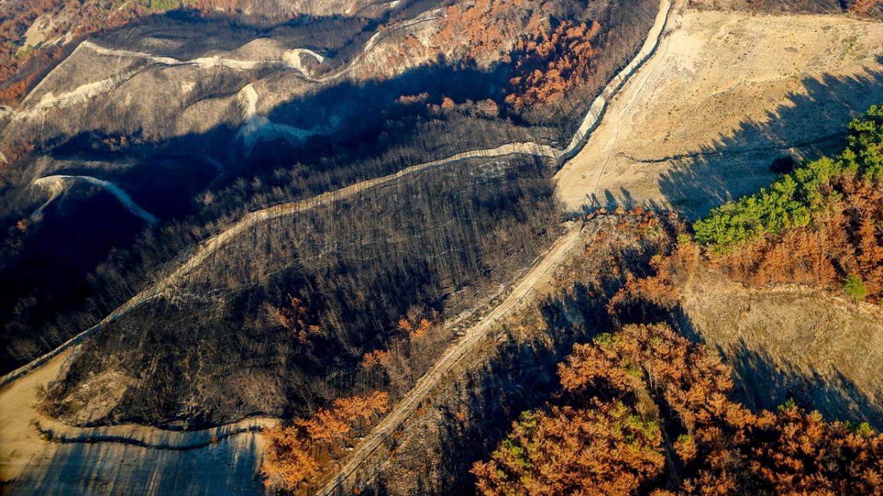 Sonbahar mevsiminin gelmesiyle yeşilin, yerini turuncuya, kırmızıya ve sarıya bıraktığı ormanlarda, yangının yaşandığı alanlarda ise hüzün veren görüntü oluştu.