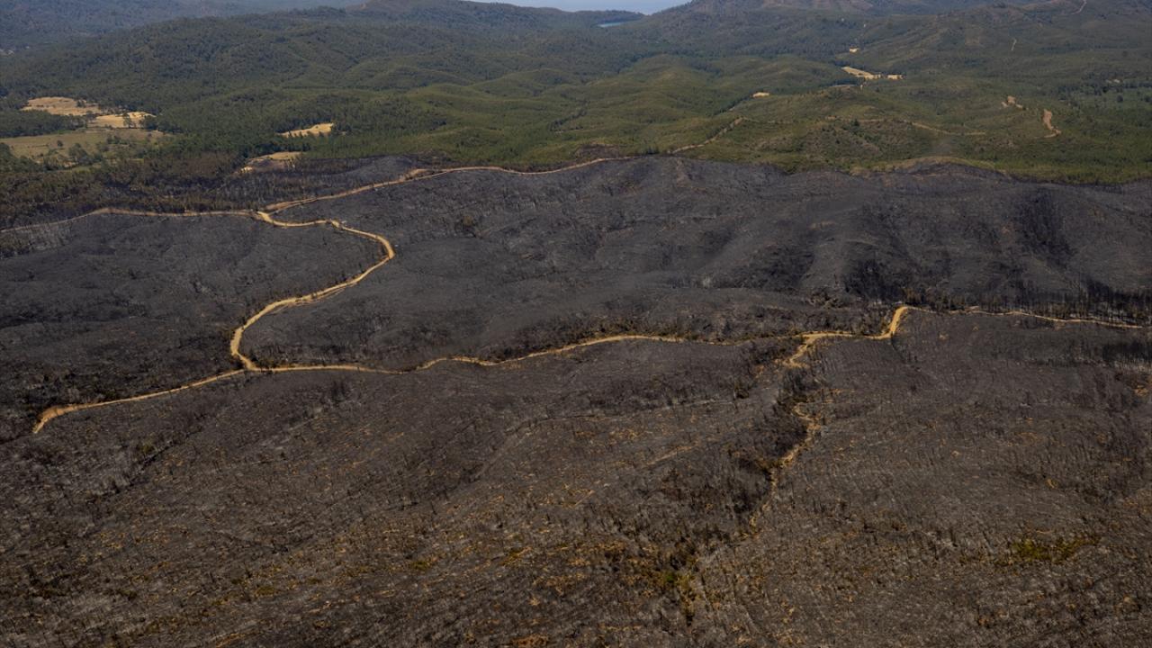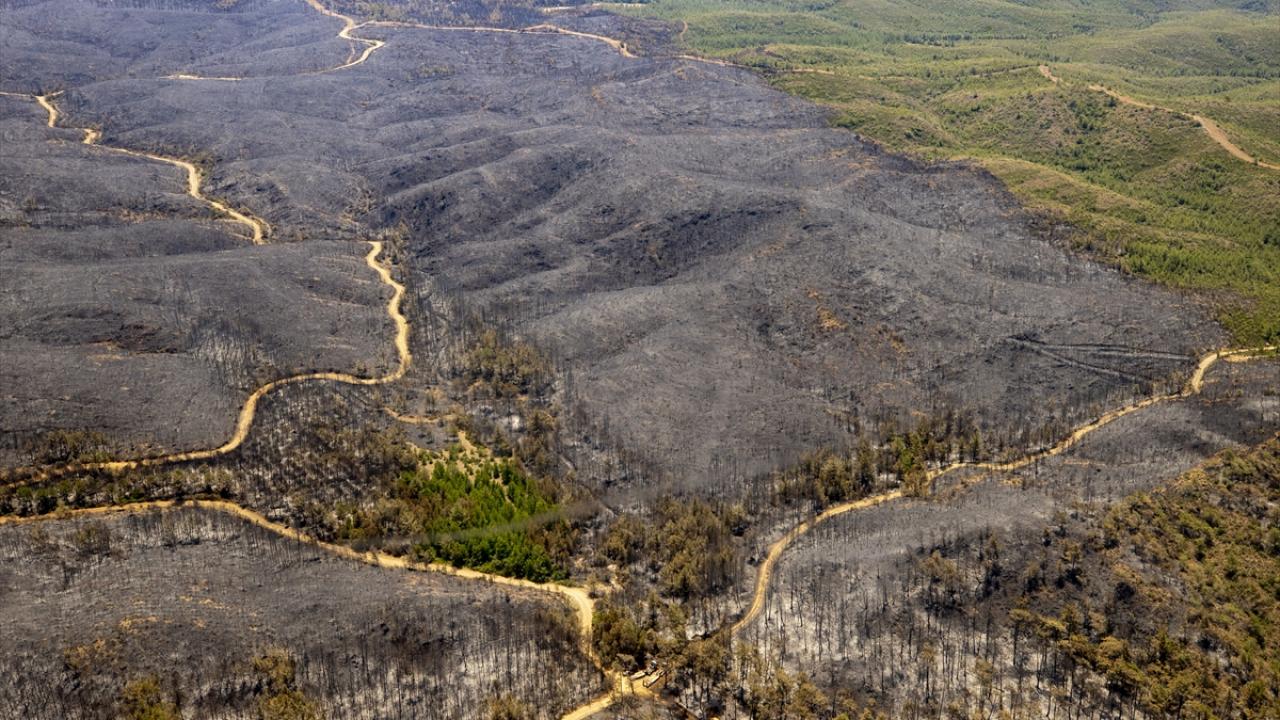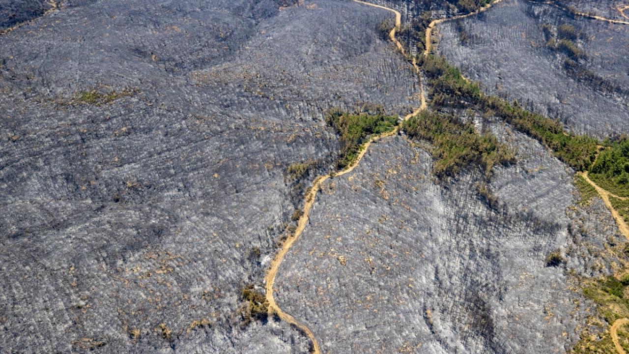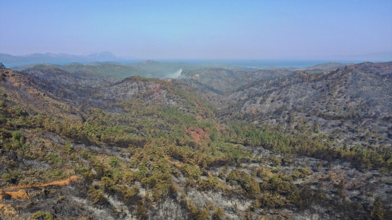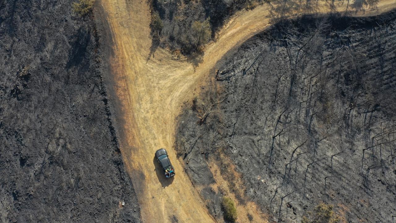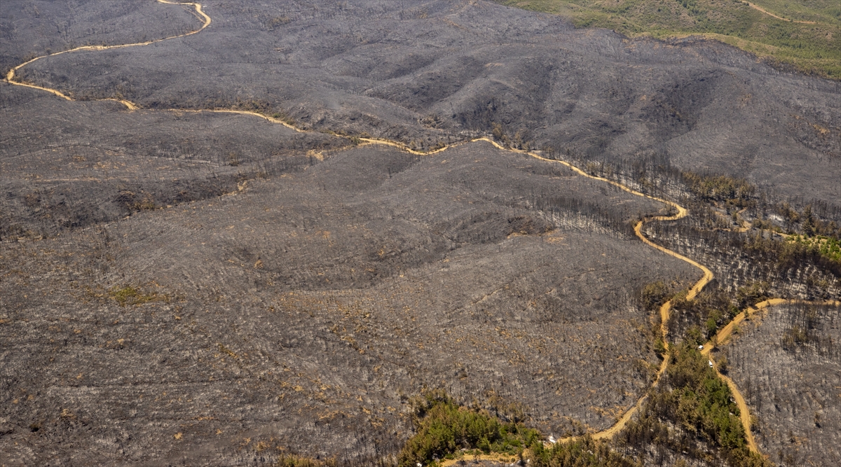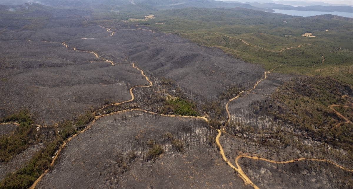 Yangının verdiği zararın büyüklüğü gözler önüne serilen görüntülerde, Yedi Adalar, Küfre Koyu ve Bördübet mevkisi arasında bulunan yangının ilk başladığı alan da yer aldı.
