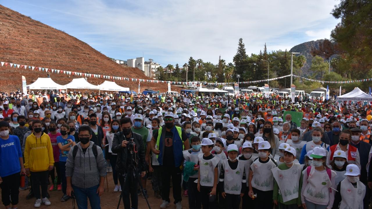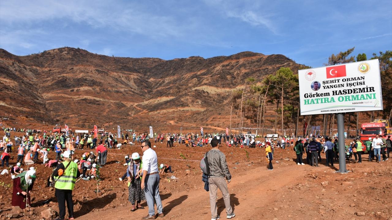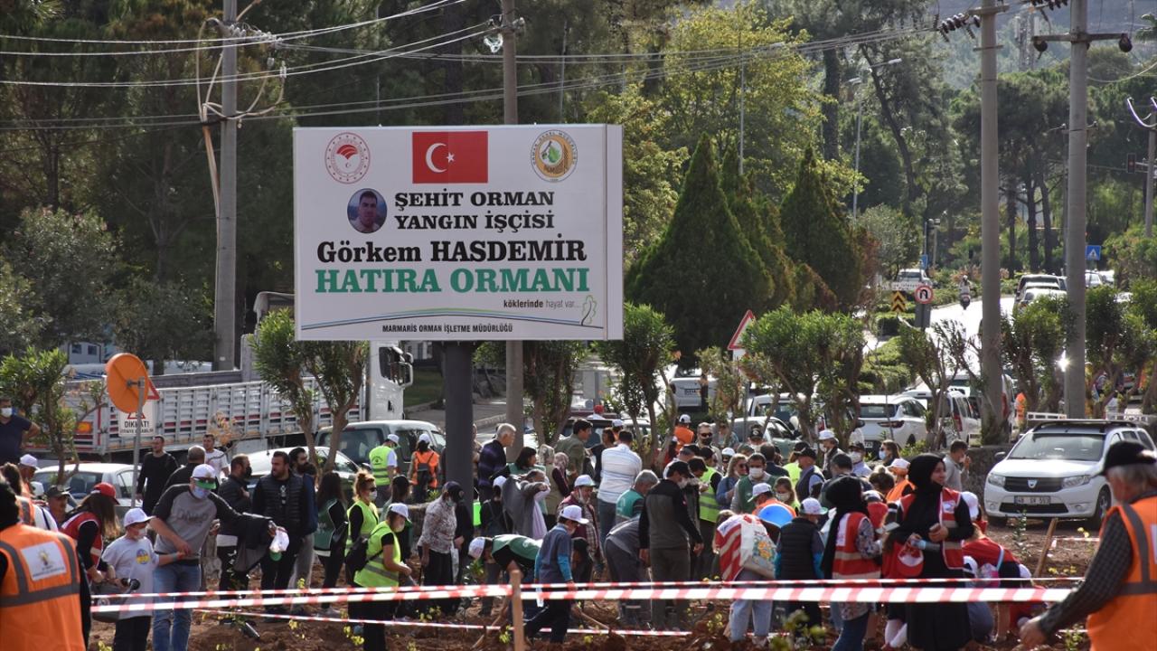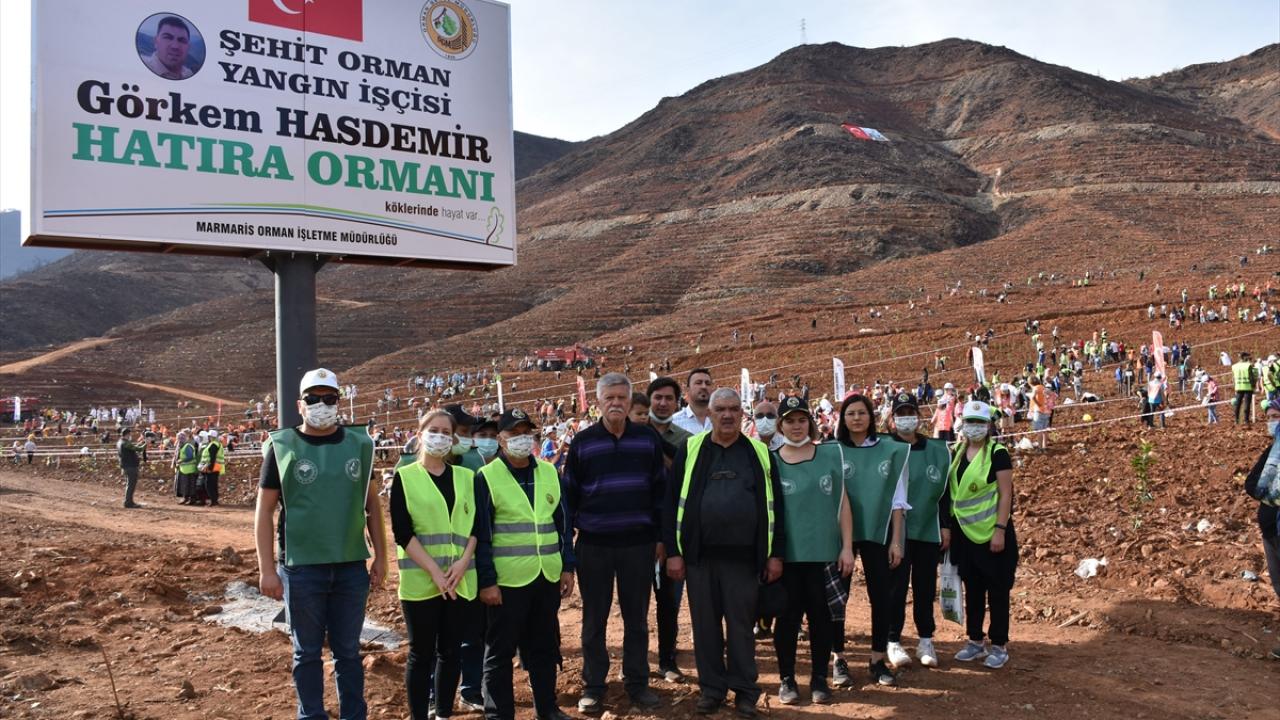 İçmeler Mahallesi`ndeki 100 hektarlık hatıra ormanında düzenlenen törene, Marmaris Kaymakamı Ertuğ Şevket Aksoy katıldı.