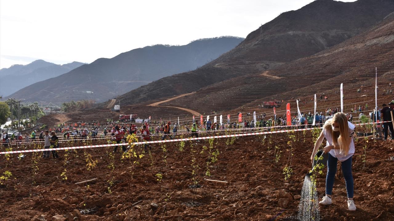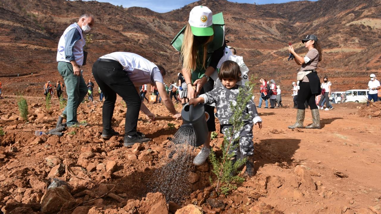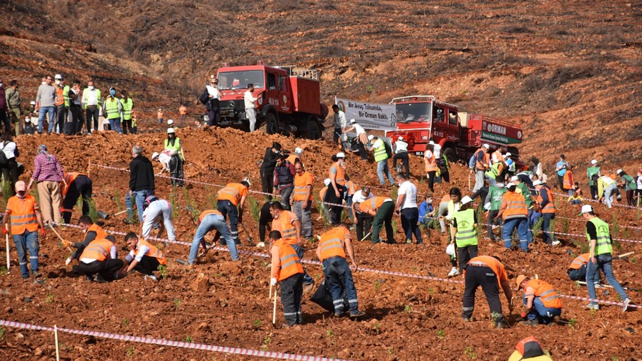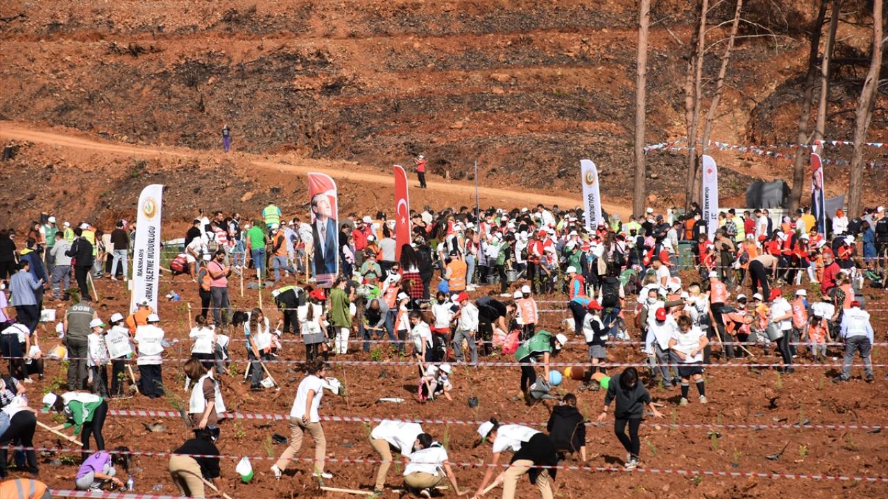 İçmeler Mahallesi`ndeki 100 hektarlık hatıra ormanında düzenlenen törene, Marmaris Kaymakamı Ertuğ Şevket Aksoy katıldı.