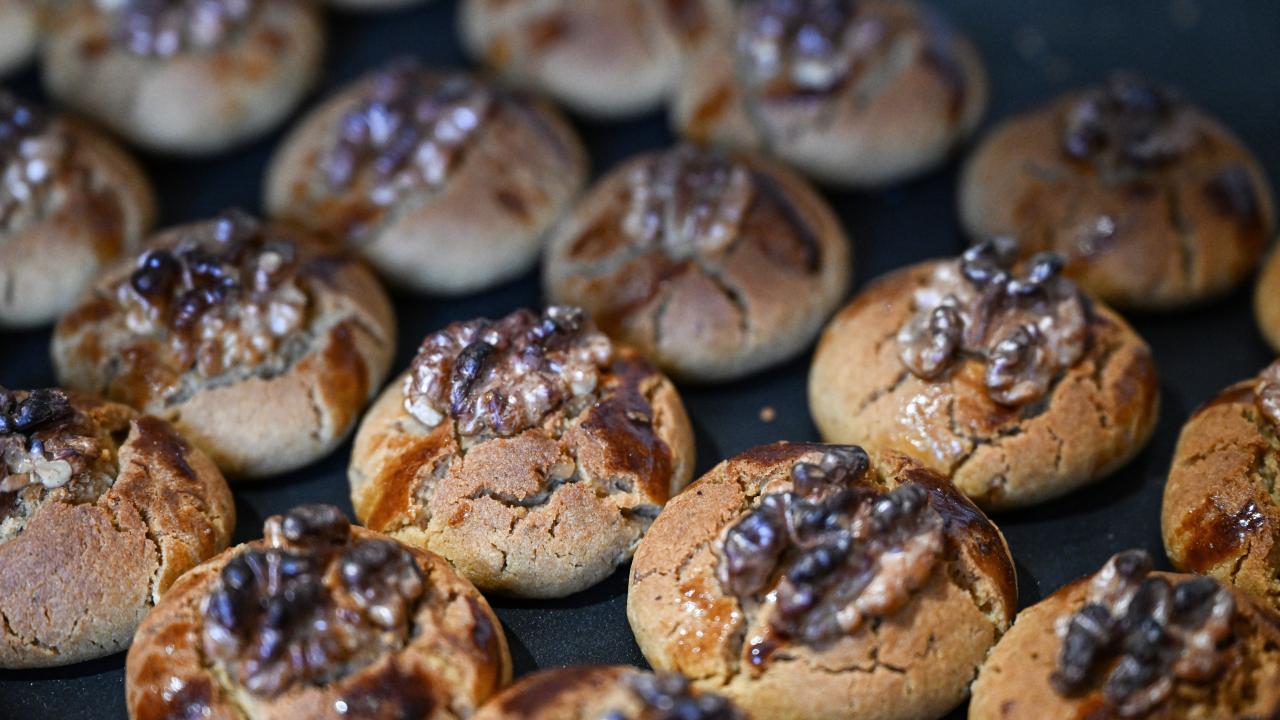 "Sokak simidimiz pekmezli. Yani içinde yağ ve şeker yok. Un, su, tuz ve biraz da ekşi maya katarak yapıyoruz. Bu ürünlerin haricinde poğaçalar, tuzlu kuru pasta, İstanbul çatalı ve tahin pekmezli kuru pastamız var."