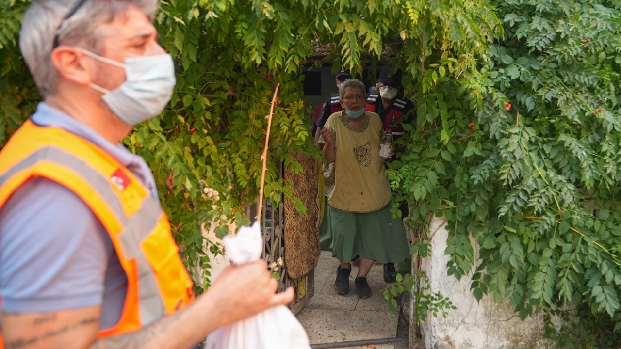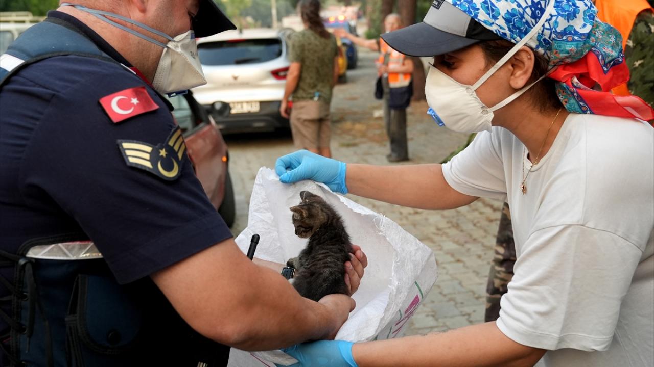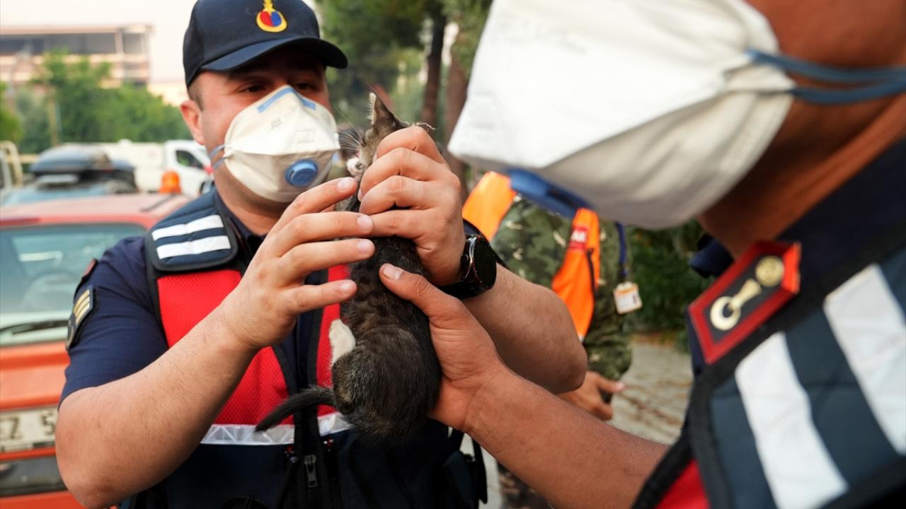 Alevlerin yaklaştığı Atatürk Mahallesi güvenlik amacıyla tahliye edildi. Bir evde yaşayan 3 kişinin tahliyesi sırasında evde yavru kedilerinin ve köpeklerinin mahsur kaldığını belirten kişi, hayvanların kurtarılması için jandarma ekiplerinden yardım istedi.