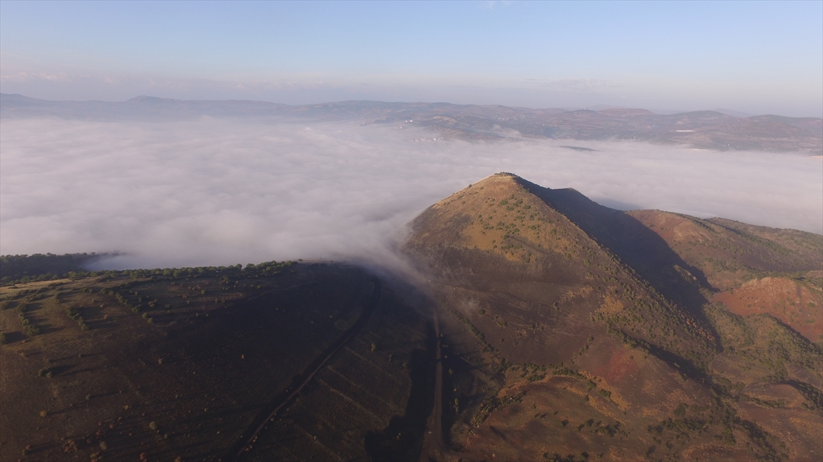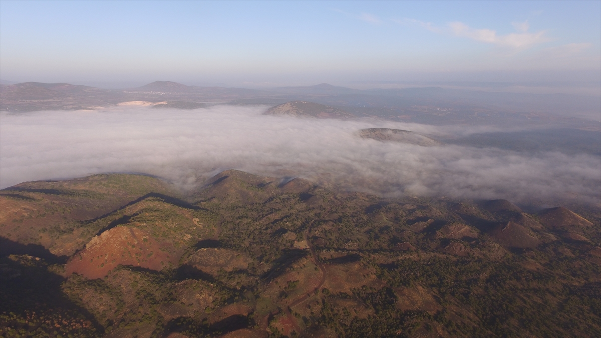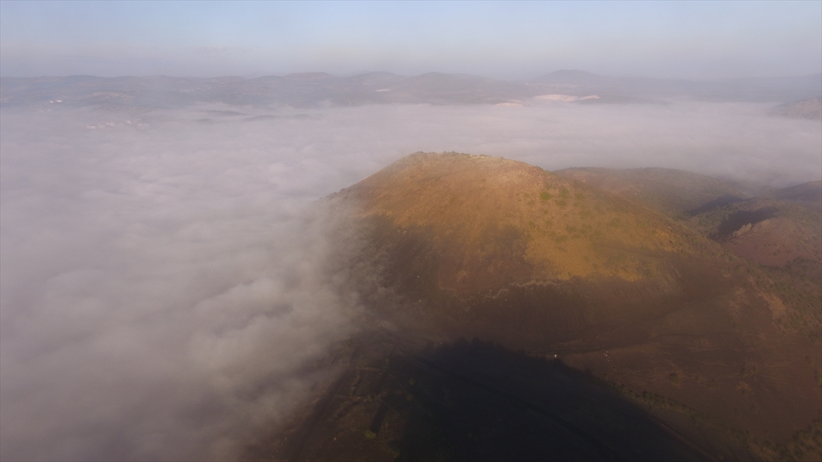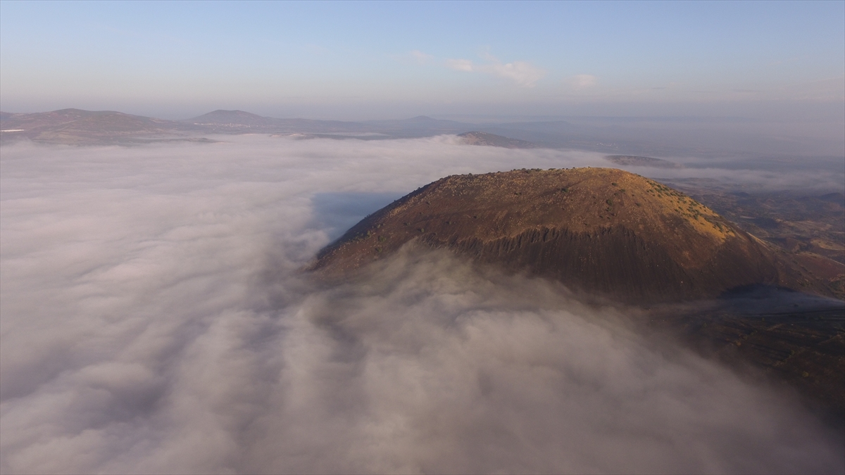 Antik çağ coğrafyacısı Strabon'un sönmüş lav kalıntıları nedeniyle "Yanık Ülke" olarak isimlendirdiği Manisa'daki Kula-Salihli Volkanik Jeoparkı'nda, bu sabah oluşan sis, güzel bir manzara oluşturdu.