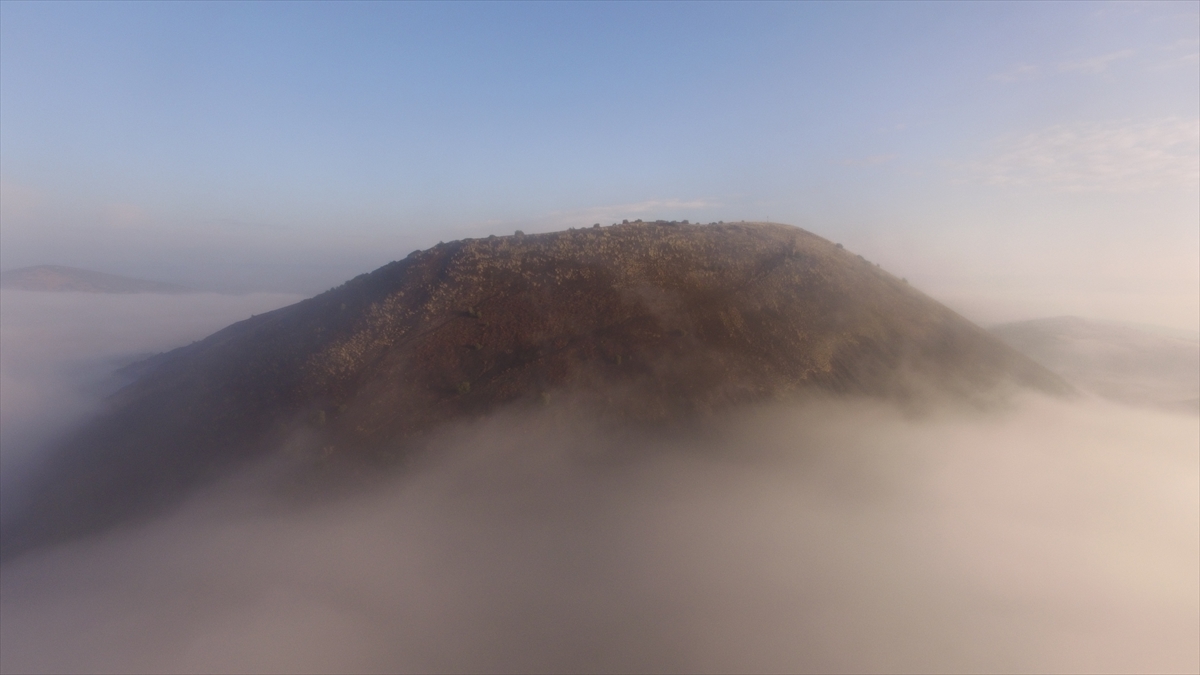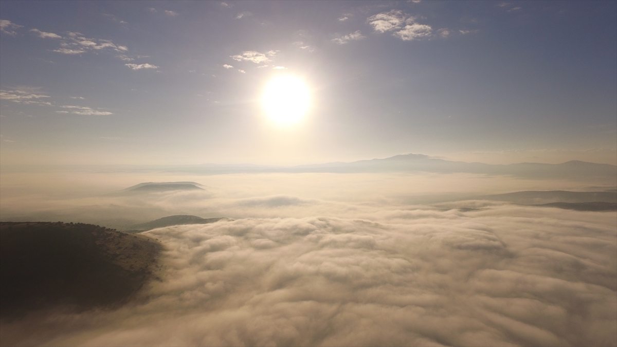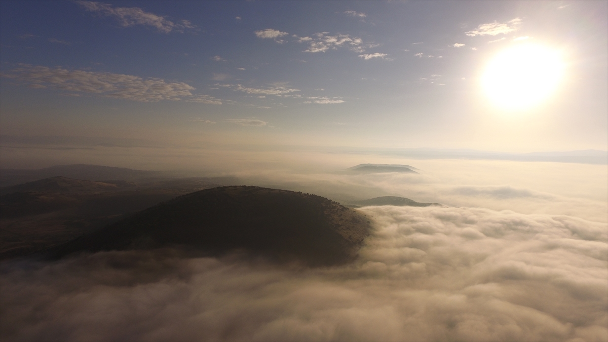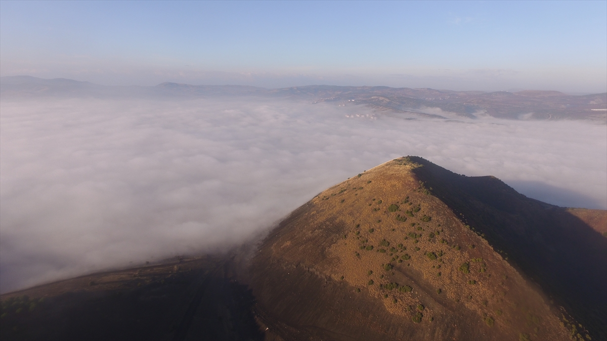 Antik çağ coğrafyacısı Strabon'un sönmüş lav kalıntıları nedeniyle "Yanık Ülke" olarak isimlendirdiği Manisa'daki Kula-Salihli Volkanik Jeoparkı'nda, bu sabah oluşan sis, güzel bir manzara oluşturdu.