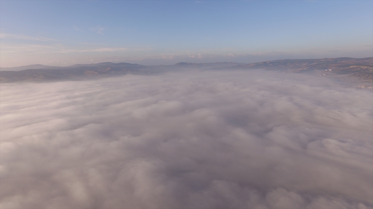 Kara yollarında görüş mesafesini azaltan ve sürücülerin yavaşlamasına neden olan sis, bazı bölgelerde oluşturduğu manzara ile dikkati çekti.