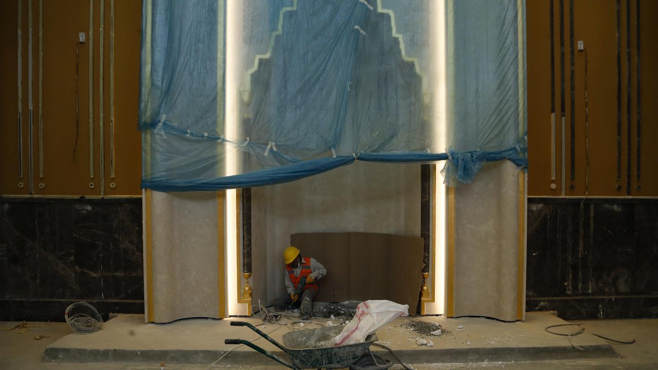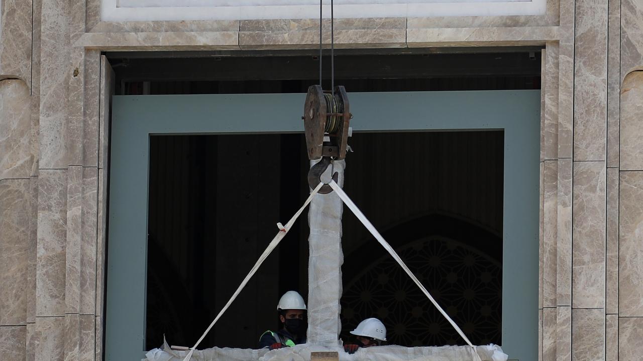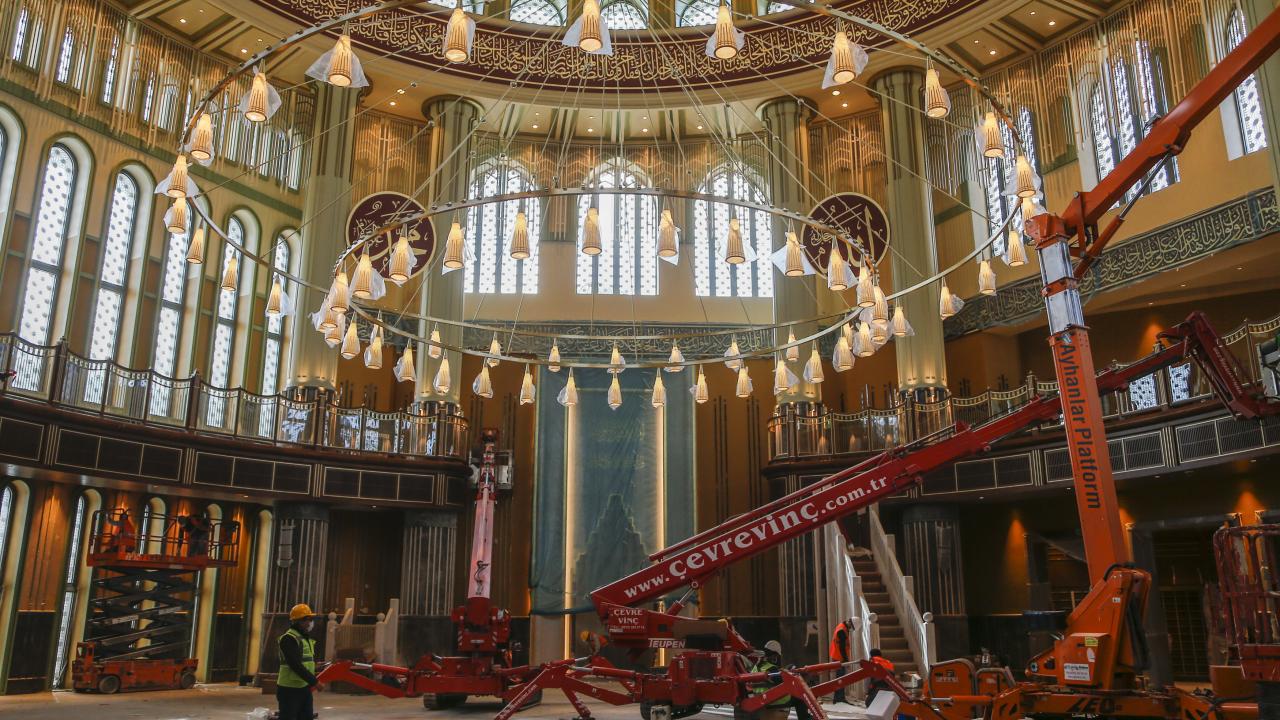 Caminin 12 metre çapında, 20 metre yüksekliğindeki 60 ışıklı dev avizesi takıldı. Avizenin elektrik testleri yapıldı.