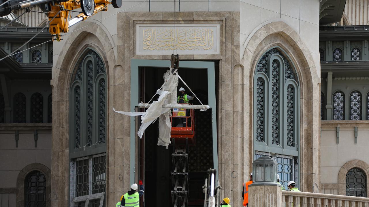 Caminin ana girişi için yapılan 7 metre yüksekliğinde, 3 metre enindeki çelik kapının kasası da takıldı. Kamyonla getirilen kasa, vinçle indirildikten sonra kalabalık bir ekip tarafından yerine monte edildi.