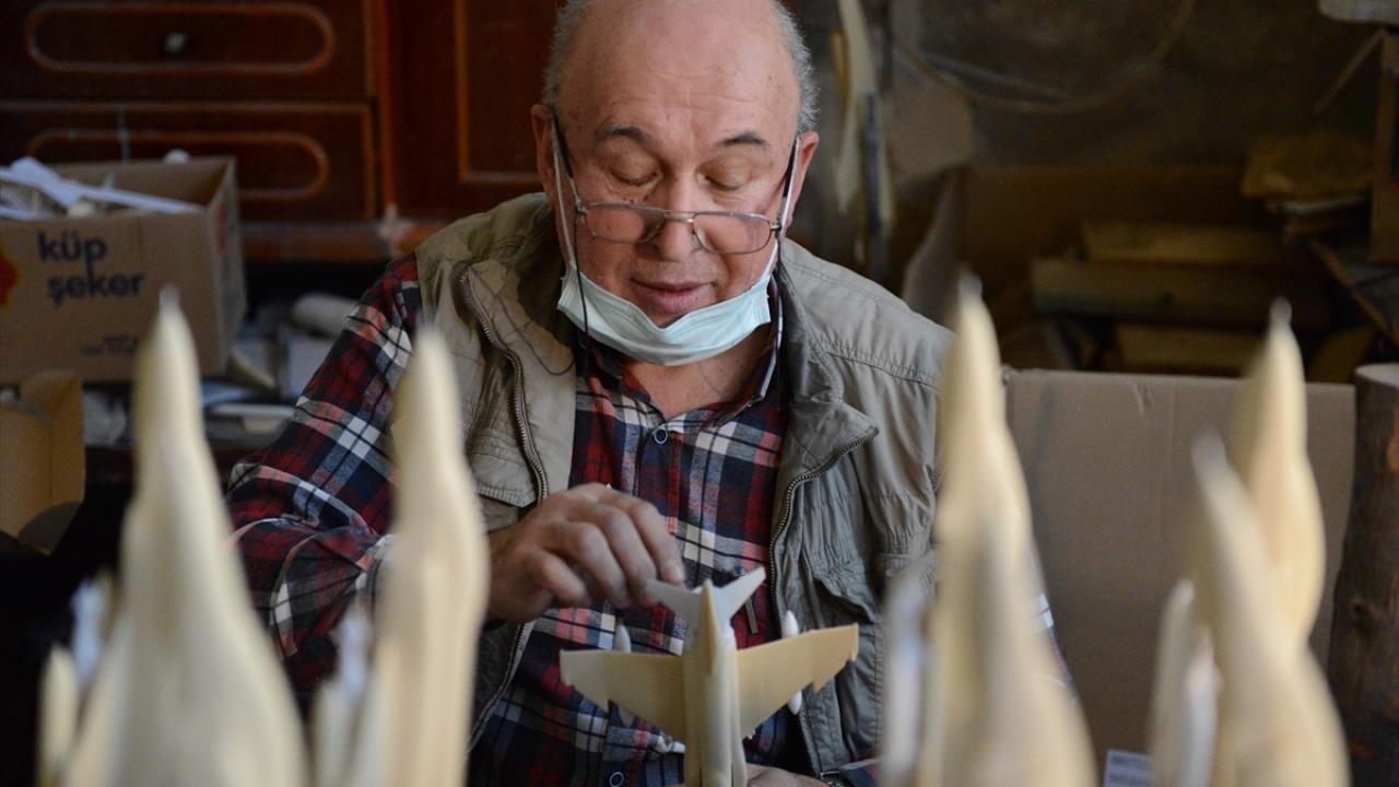 Eskişehir'de yaşayan emekli metal kalıpçısı Levent Küçük, Türk Hava Kuvvetlerinin envanterinde bulunan savaş ve eğitim uçaklarının maketlerini atölyesinde üretiyor.
