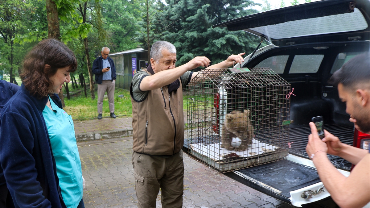 Bursa'nın Gürsu ilçesi kırsal Dışyaka Mahallesi'nde ormanlık alanda bulunan ve ön sağ ayağındaki kırık nedeniyle ameliyat edilen ayı yavrusu koruma altına alındı.