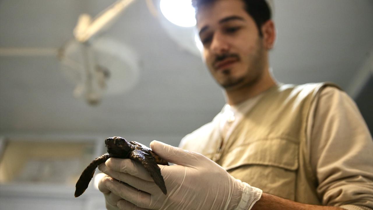 İyileşmesi için yoğun çalışma yürütülen küçük caretta caretta, sağlığına kavuşmasının ardından doğal yaşam alanına salınacak.