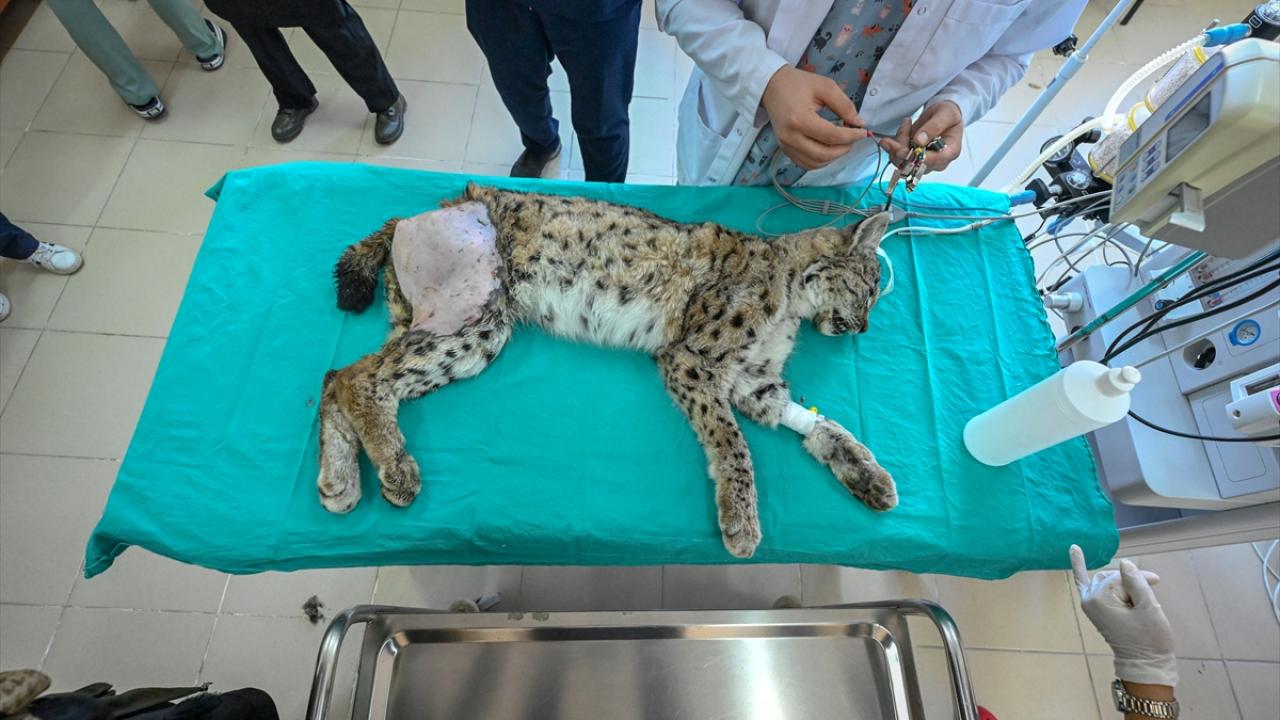 Yaklaşık 2 saat süren ameliyatla bacağındaki kırık tedavi edilen vaşağın tedavisi için Prof. Dr. Aslan, DKMP 14. Bölge Müdürlüğü ve hayvan hastanesi ekibinin çabası, AA ekibi tarafından kayıt altına alındı.