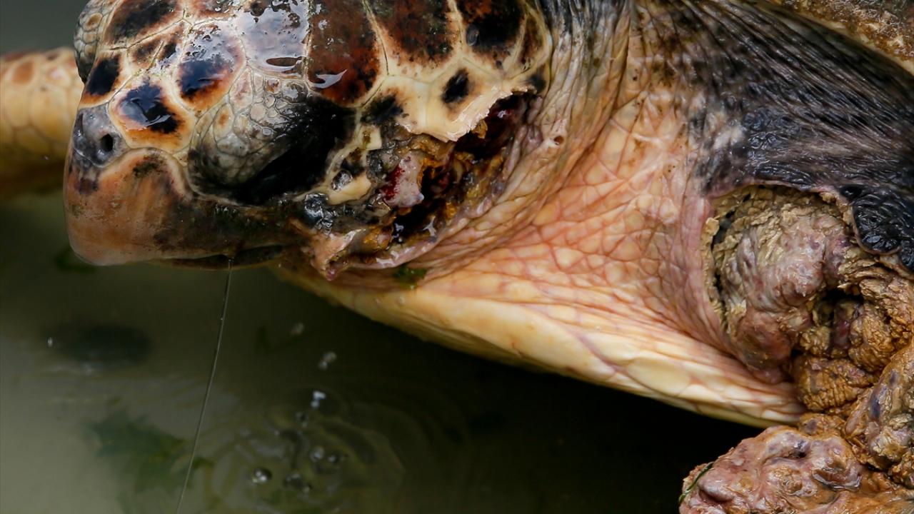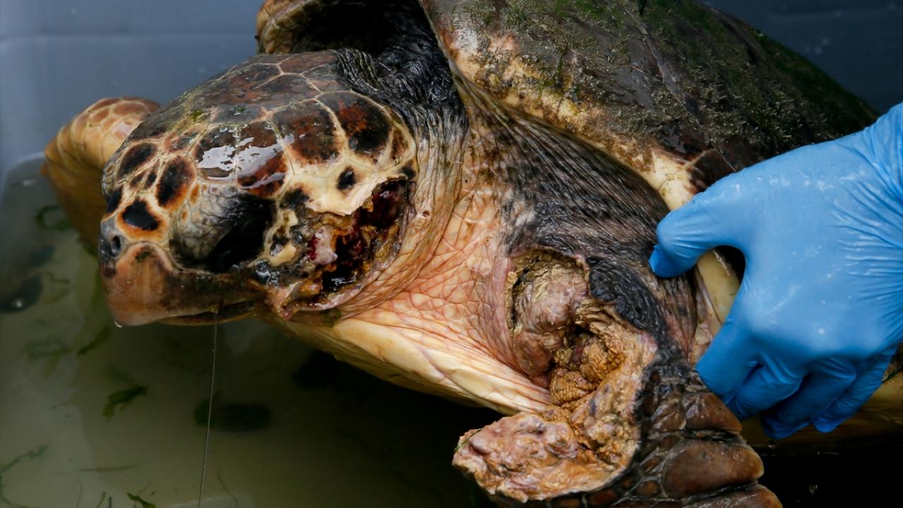 Yaralı caretta carettanın başında 60'tan fazla saçma tespit edildi