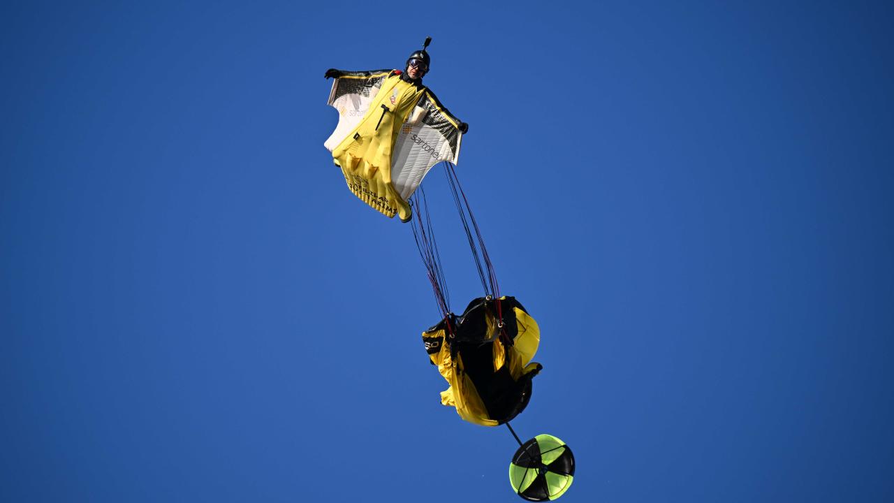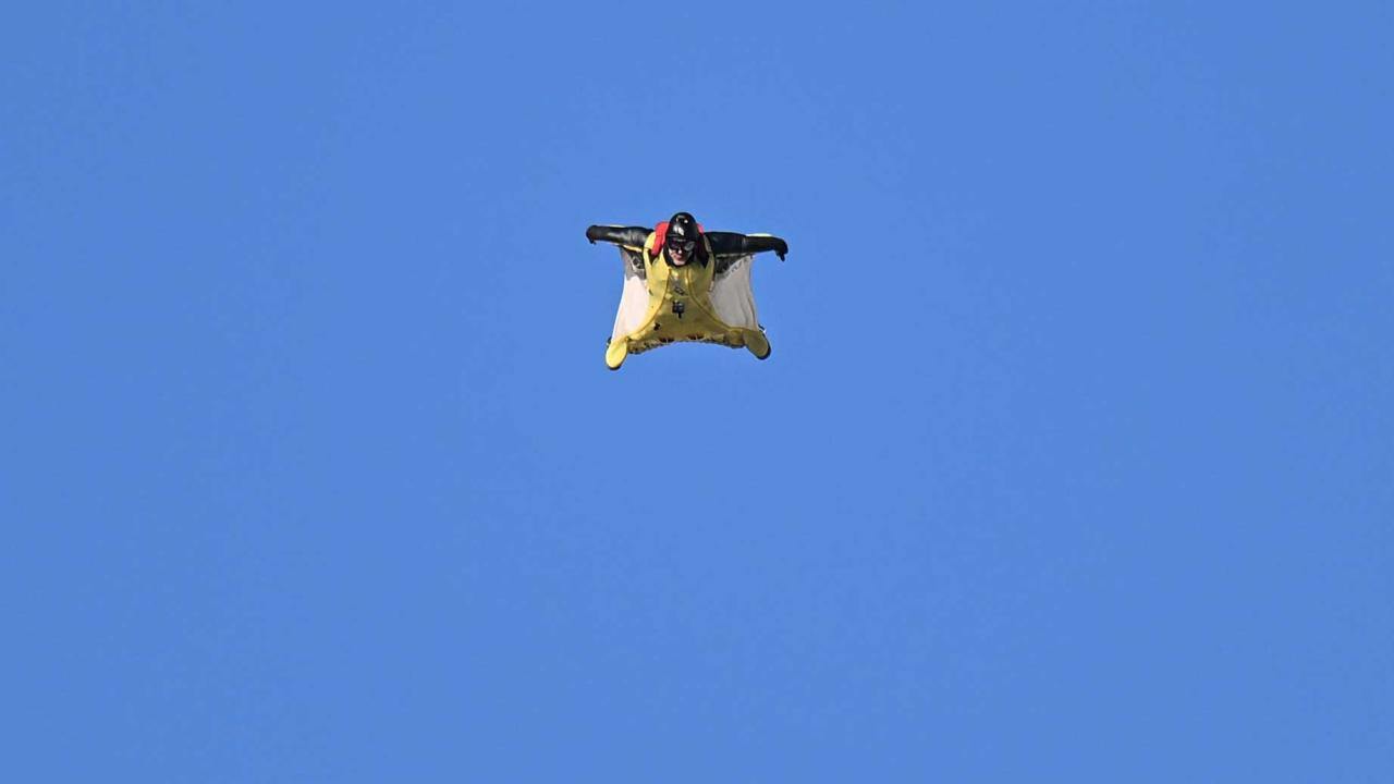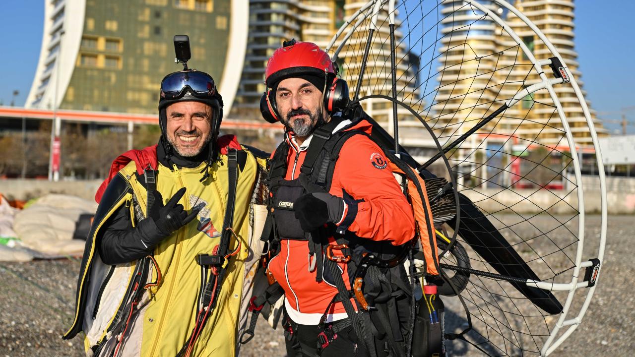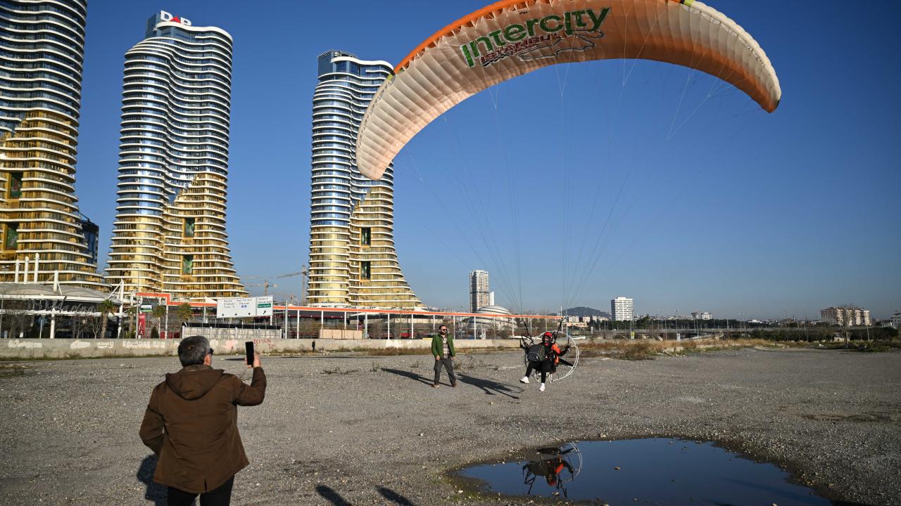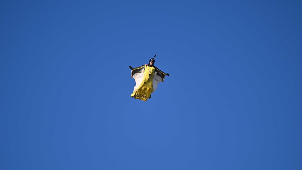 "Yarasa adam" olarak bilinen ekstrem sporcusu Cengiz Koçak, İstanbul'da 700 metre yükseklikte paramotordan atlayıp, iki binanın arasından geçerek Kartal Sahili'ne iniş yaptı.