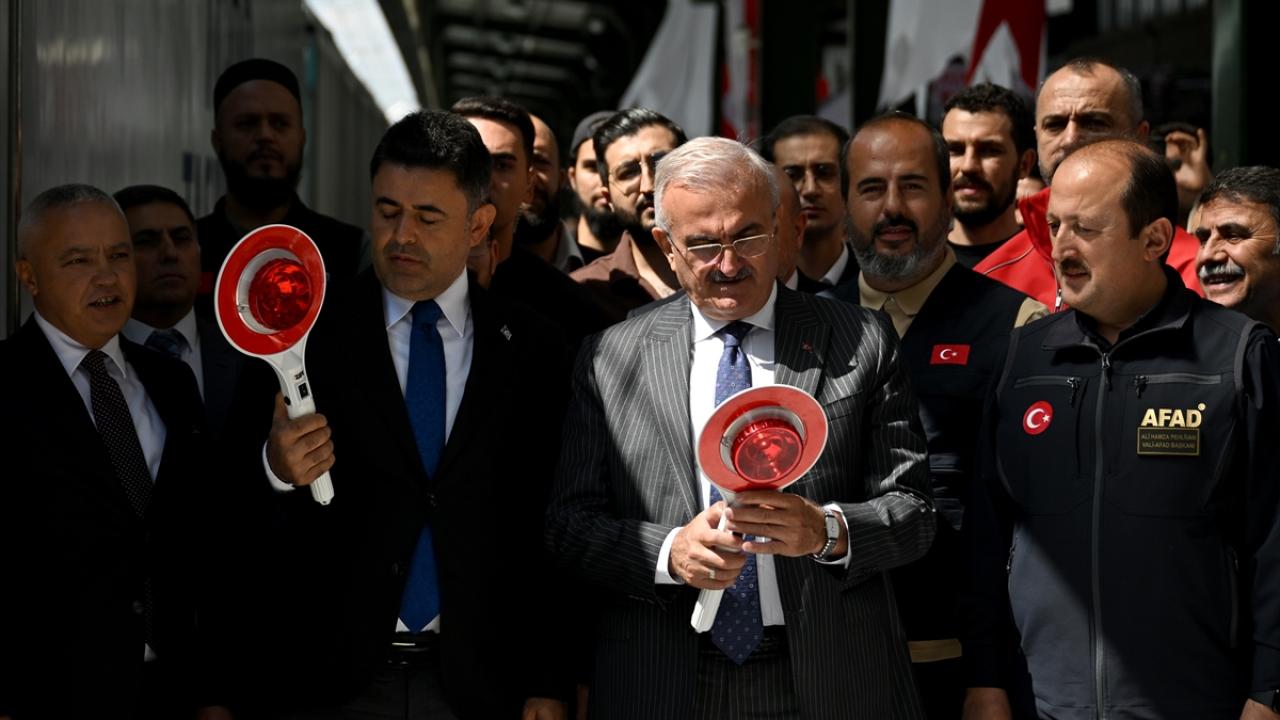 İçişleri Bakan Yardımcısı Münir Karaloğlu, Ulaştırma ve Altyapı Bakan Yardımcısı Osman Boyraz, AFAD Başkanı Ali Hamza Pehlivan, Türkiye Cumhuriyeti Devlet Demiryolları (TCDD) Taşımacılık AŞ Genel Müdürü Ufuk Yalçın ve sivil toplum kuruluşu temsilcileri, treni uğurlamak için Ankara Garı`na geldi.
