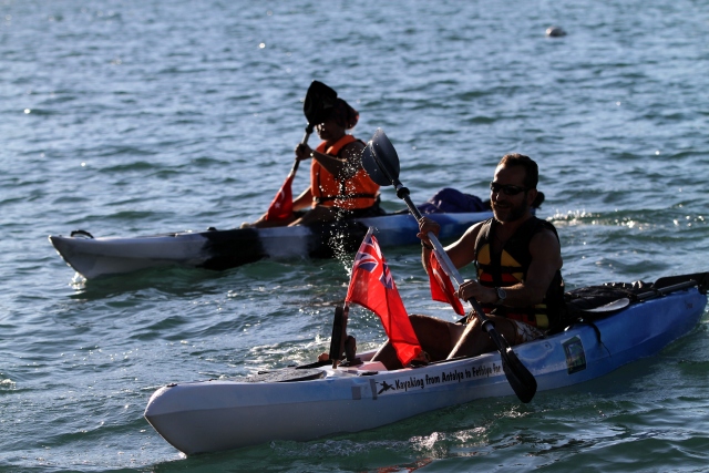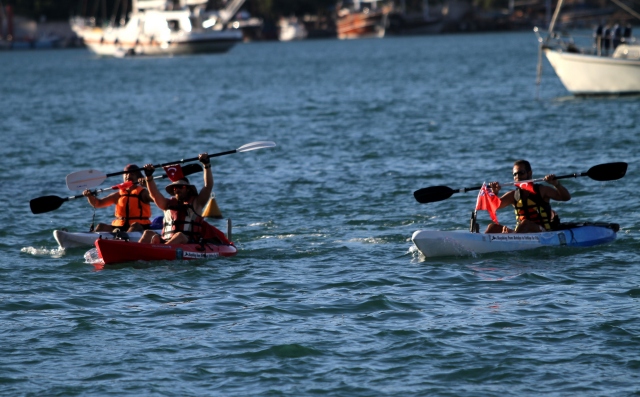 Yardıma muhtaç çocuklara destek olmak için 25 gün önce kanoyla Antalya'dan yola çıkan Doğan Eraslan (39) ve Serkan Tarım (44) ile İngiliz Sam Tucker (28), Muğla'nın Fethiye ilçesine ulaştı.