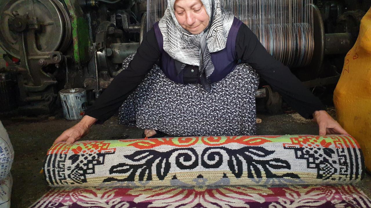 Osmaniye'nin Kadirli ilçesinde yaşayan Fevzi Esmeray, yarım asırdır eski kıyafetlerden elde edilen ip ve kumaşları yeniden değerlendirerek dokuma tezgahında yolluk ve kilime dönüştürüyor