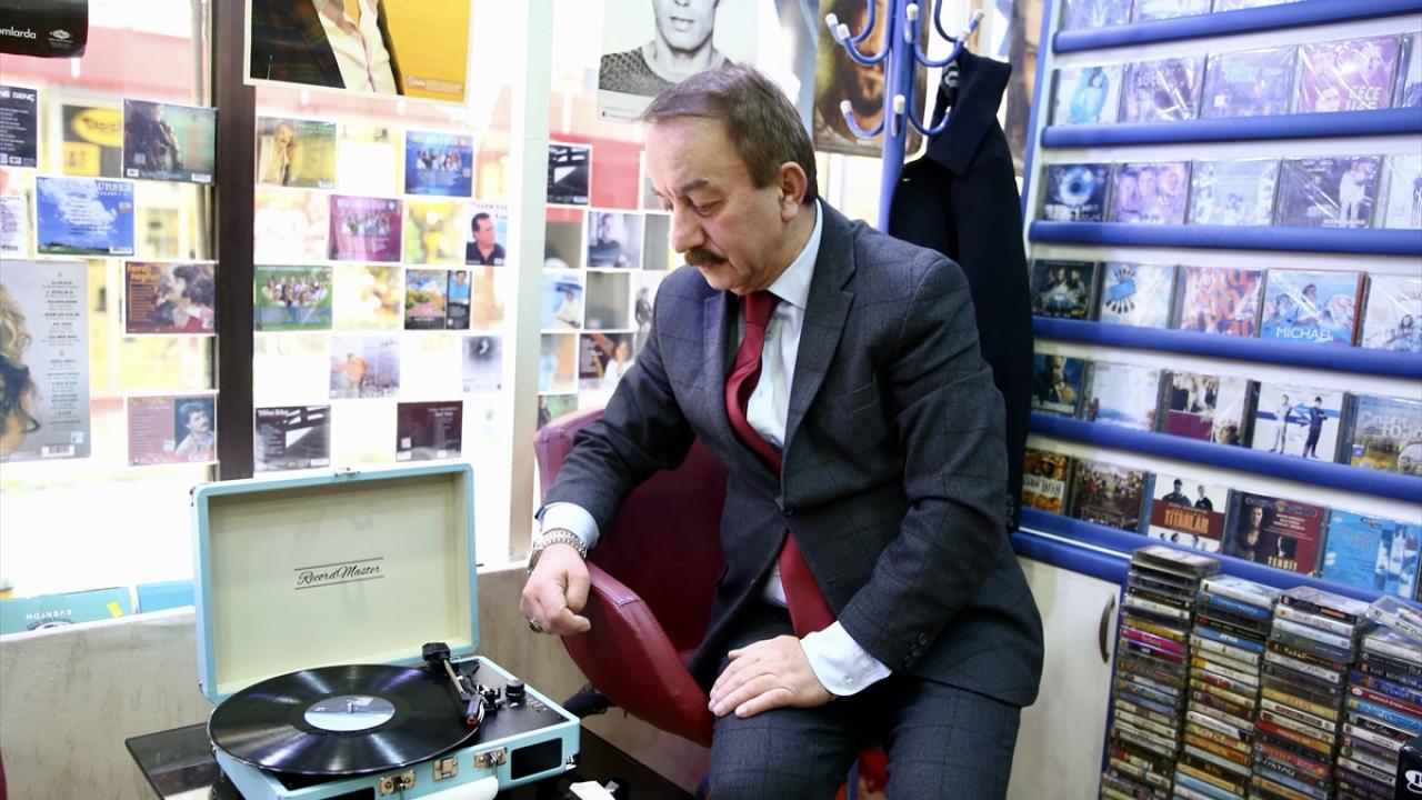 Aydın`ın iş yerinde 1980`li yıllardan yakın tarihe kadar 1500`ün üzerinde kaset ile nostalji şarkılar içeren plak yer alıyor.