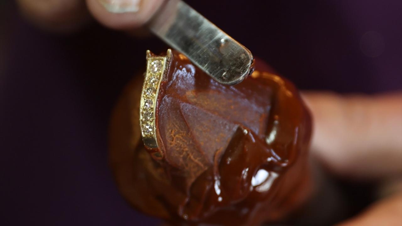 "Mıhlama sanatı yüzük, küpe, bilezik, broş gibi gelen bütün işlerin üzerine takılan taşların sanatıdır. Topkapı Sarayı`nda padişahın tahtına taşlar mıhladıklarını görüyoruz. O zamanlarda bile taş takma sanatı vardı. Size bir yüzük gösteriyorum. Bu yüzüğün kenarları delik ve bunların hepsine taş konacak. Şimdi şu yüzüğü bu vaziyette gördüğünüzde hiçbir şey anlamıyorsunuz. Ama iş bittikten, taşlar konulduktan sonra iş meydana çıkıyor ve o vakit `ne güzel` diyorsunuz."