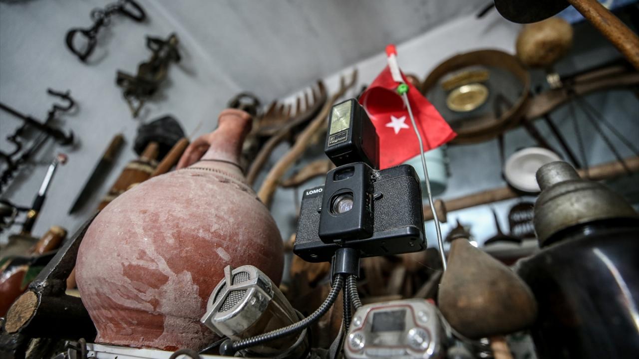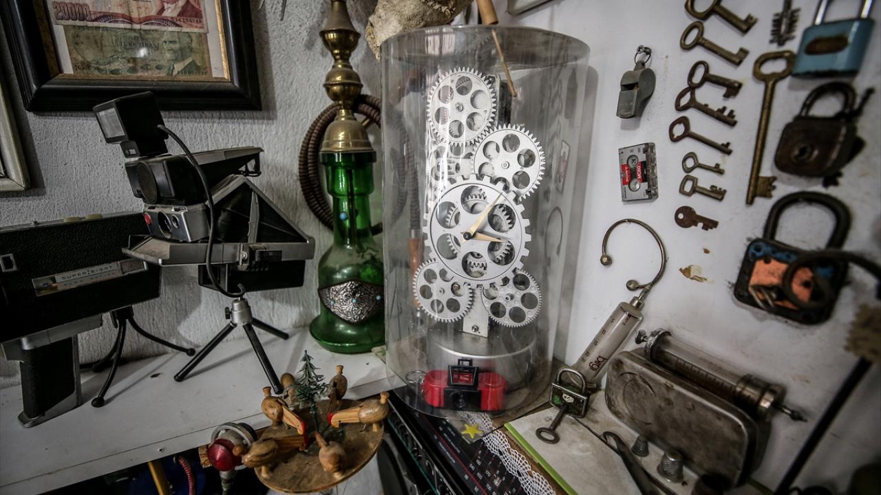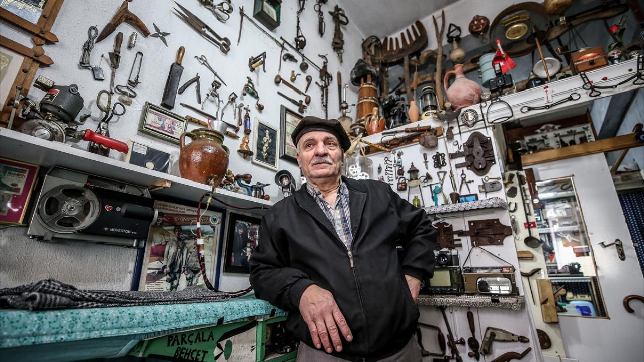 Demir`in iş yerine gelenler, eski film makinesinden saate, plak ve müzik kasetinden fotoğraf makinelerine, çok sayıda farklı tür makas ve tarım aletlerine kadar yüzlerce eski eşyayla donatılmış 15 metrekarelik iş yerinde adeta kendilerini müzede hissediyorlar.