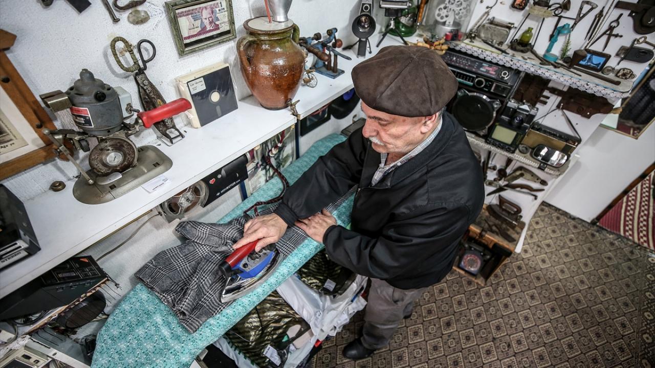 Kasetçalarına koyduğu Türk Sanat Müziği eşliğinde bir yandan ütü yapan bir yandan da dikiş diken terzi, müşterilerine nostaljik dakikalar yaşatıyor.