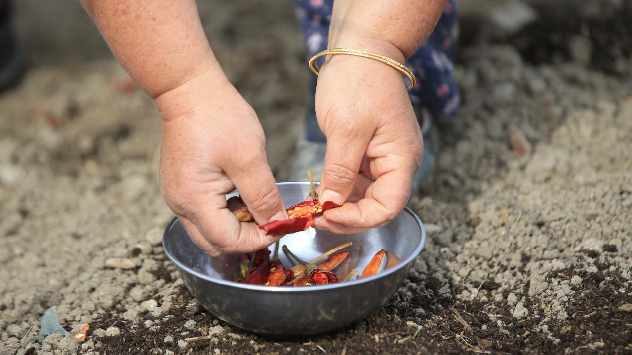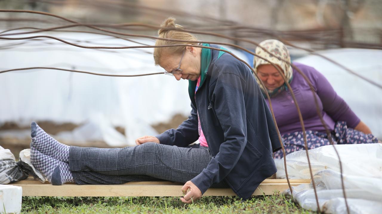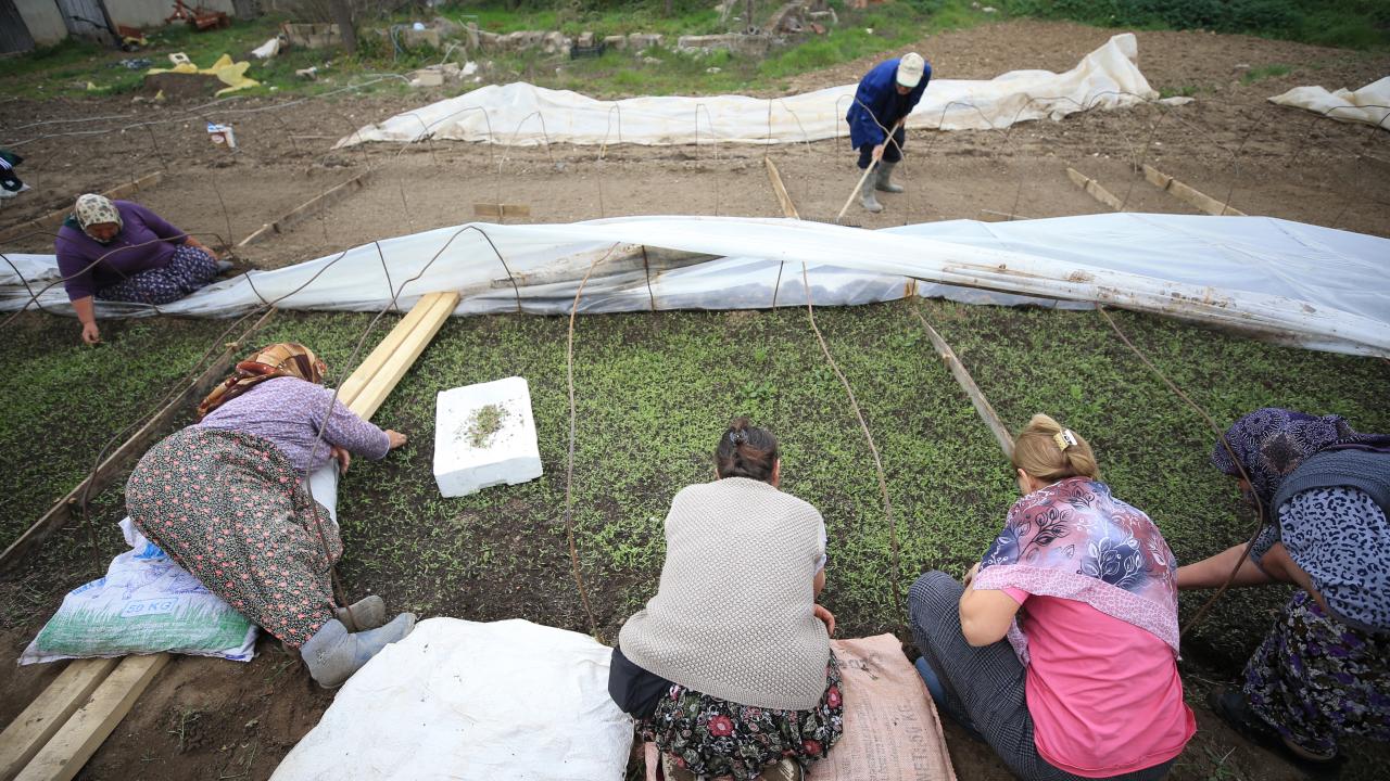 Kadınlar tarafından evlerinin bahçelerinde çapalanan toprak, tohumların serpilmesi için özenle hazırlanıyor.
