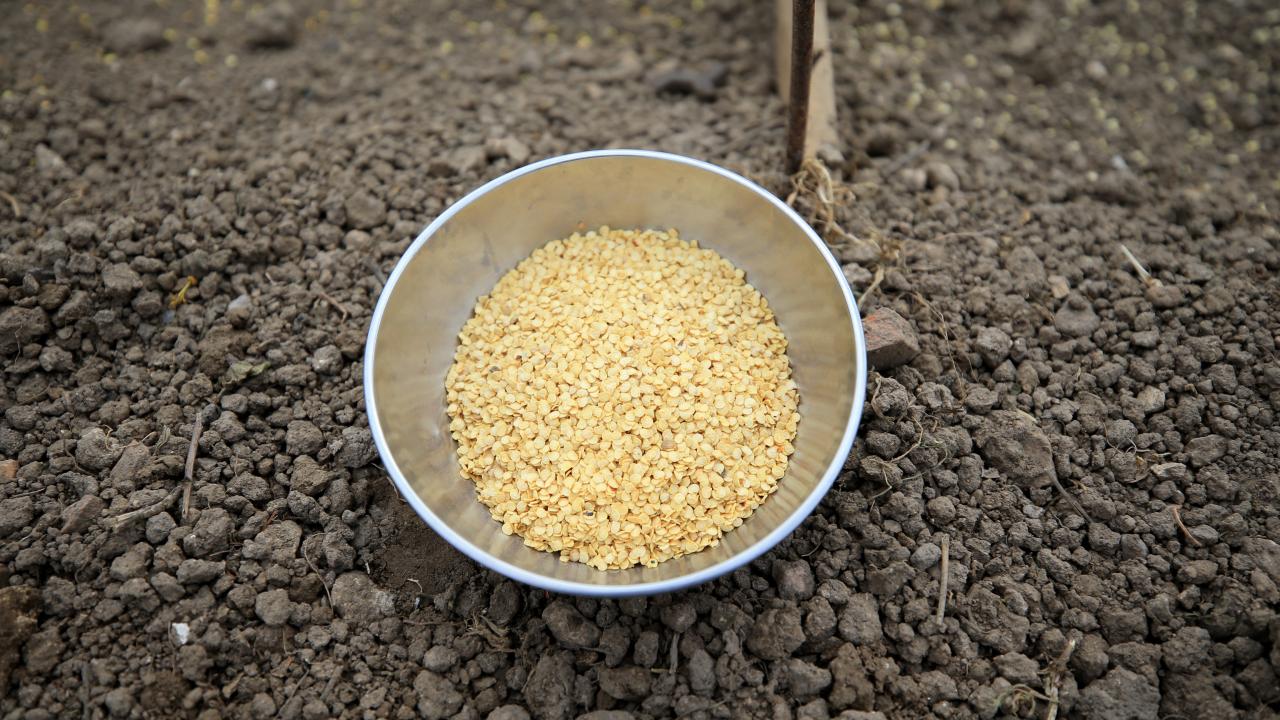 Toprakla buluşturulan tohumların üstleri sığır gübresiyle kapanıyor. Daha sonra brandayla örtülen tohumlar yaklaşık 15 gün içerisinde çimlenmeye başlıyor. Çimlenen tohumlar, fidelerin gelişmesi için otlarından temizleniyor.