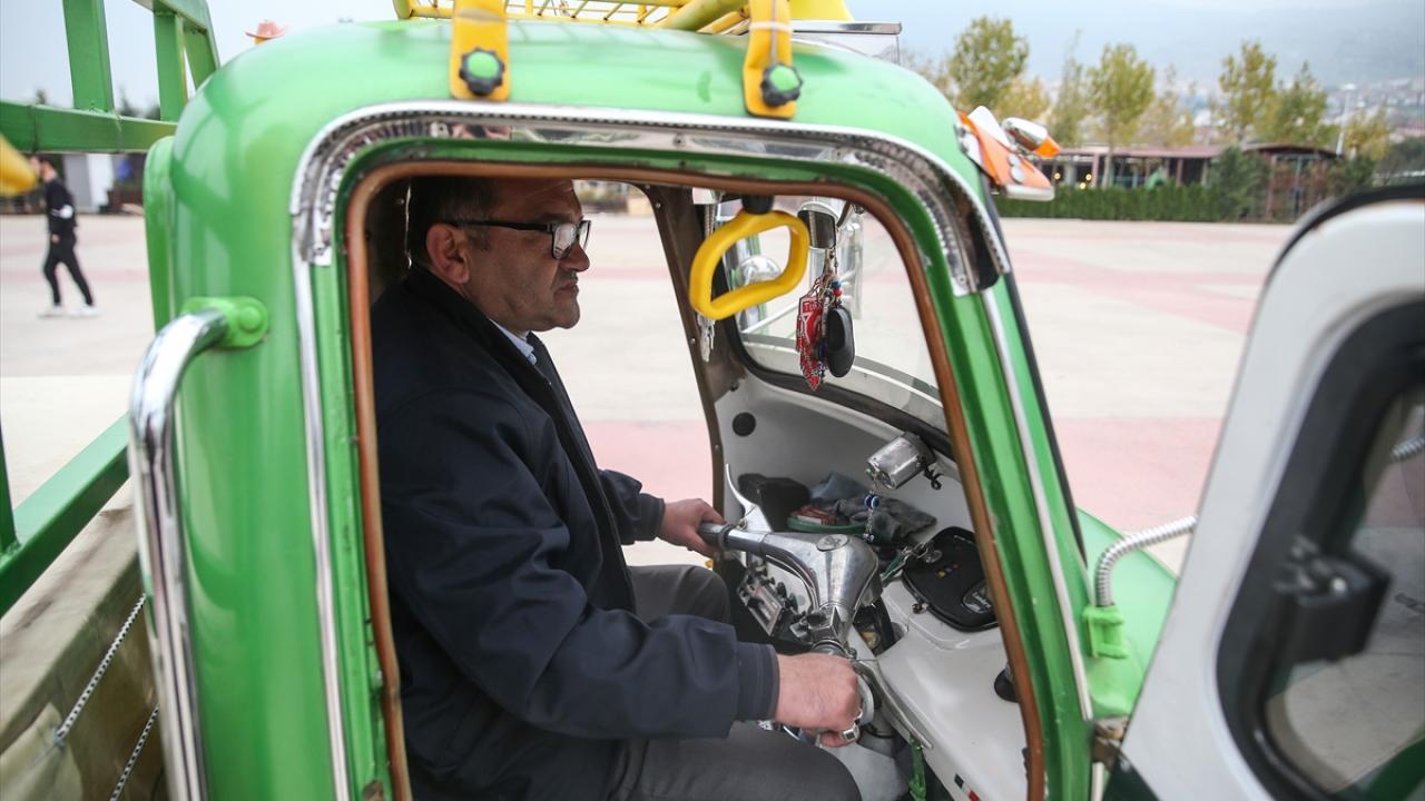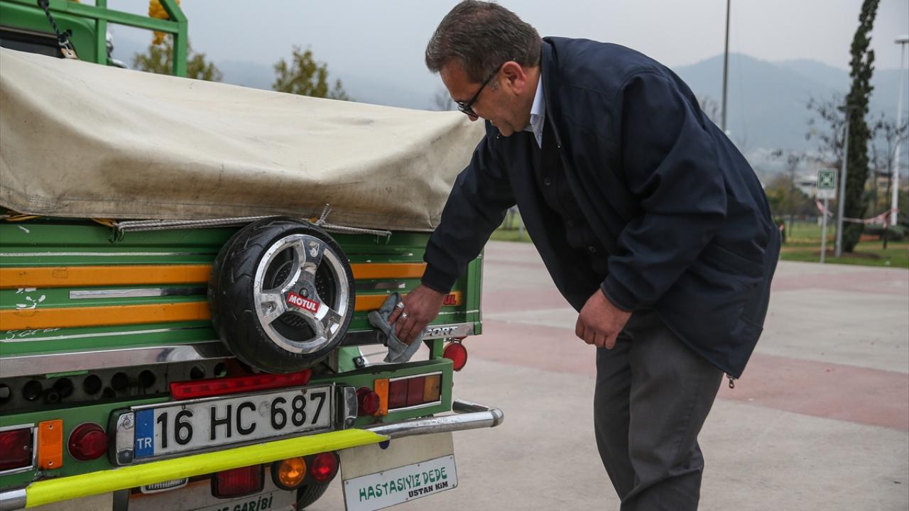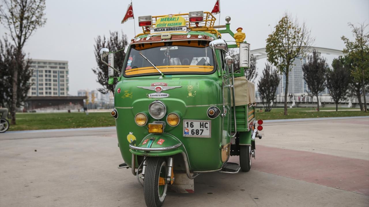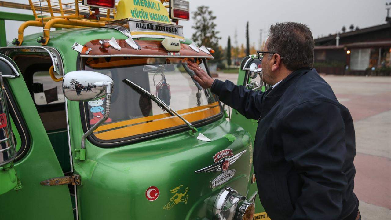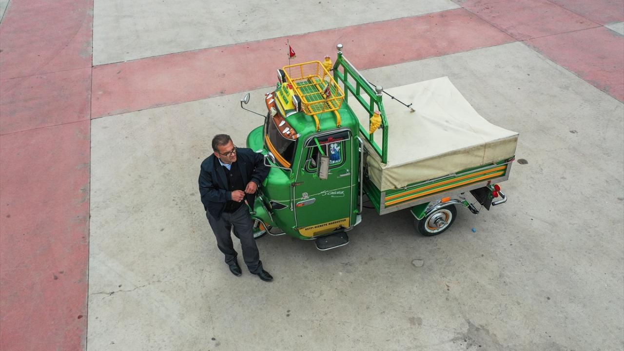 Bursa'da şehir içi otobüs şoförlüğü yapan Erol Çakmak, 6 yıl önce satın aldığı ve motorundan kaportasına birçok parçasını yenileyip süslediği 1970 model triportörüne özenle bakıyor.