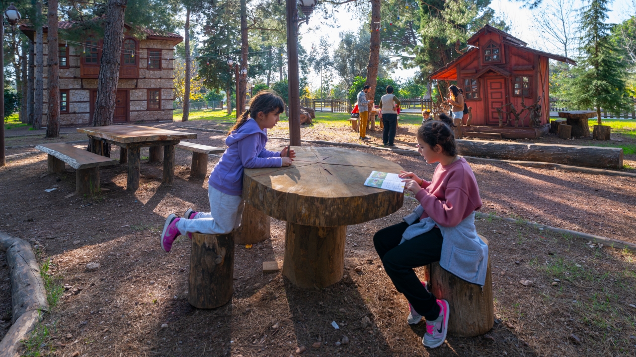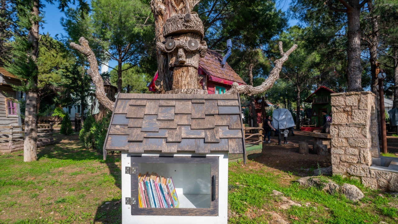 1500 metrekarelik alana kurulu açık hava kütüphanesinde ağaçlar arasına inşa edilmiş yedi masal ve bir hobit evi, açık hava kitaplıkları ve ahşaptan yapılmış okuma alanları bulunuyor.