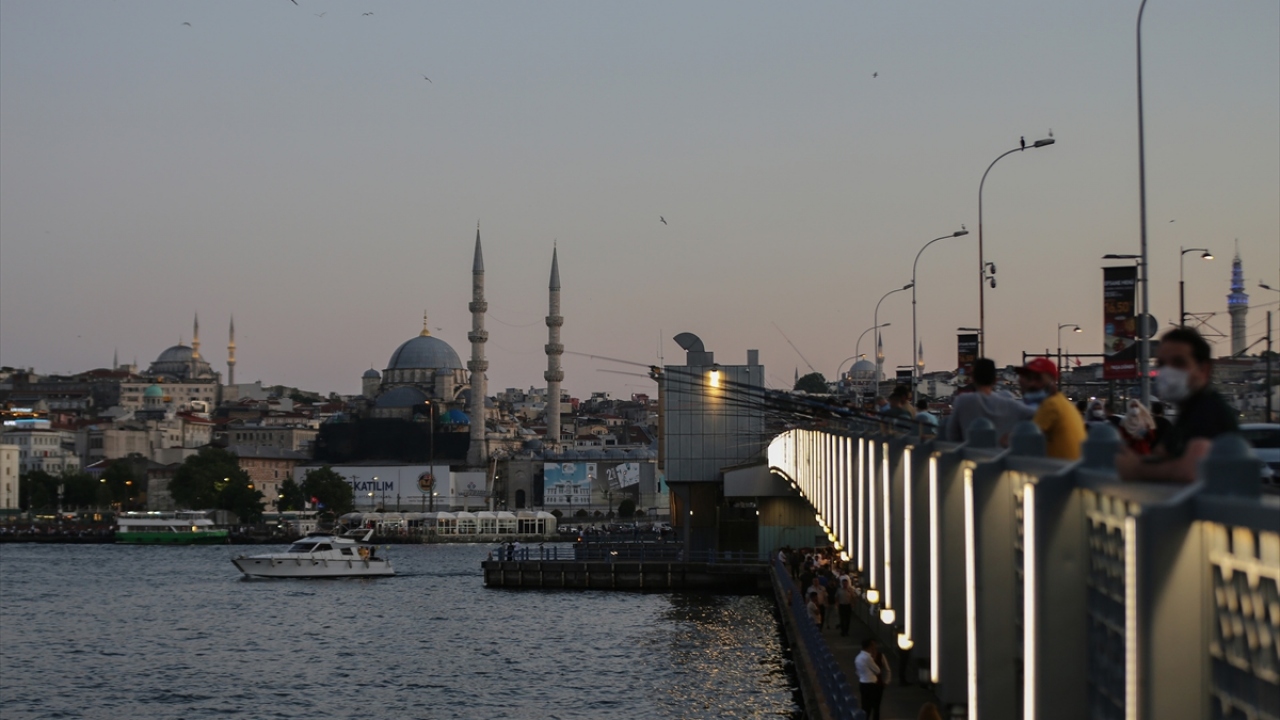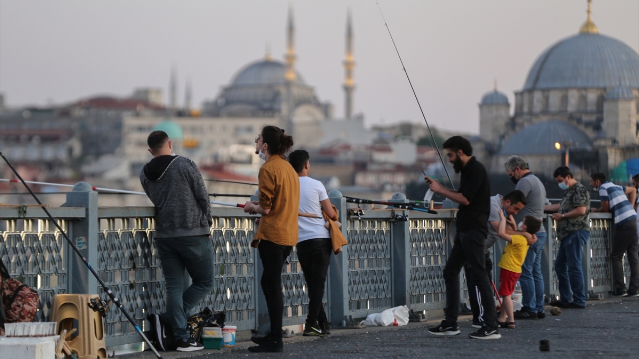 Türkiye genelinde 09.30-18.30 saatleri arasında uygulanan kısıtlamanın tamamlanmasıyla İstanbul`da bazı vatandaşlar Galata Köprüsü`ne gelerek balık tutarken bazıları da yürüyüş yaptı.