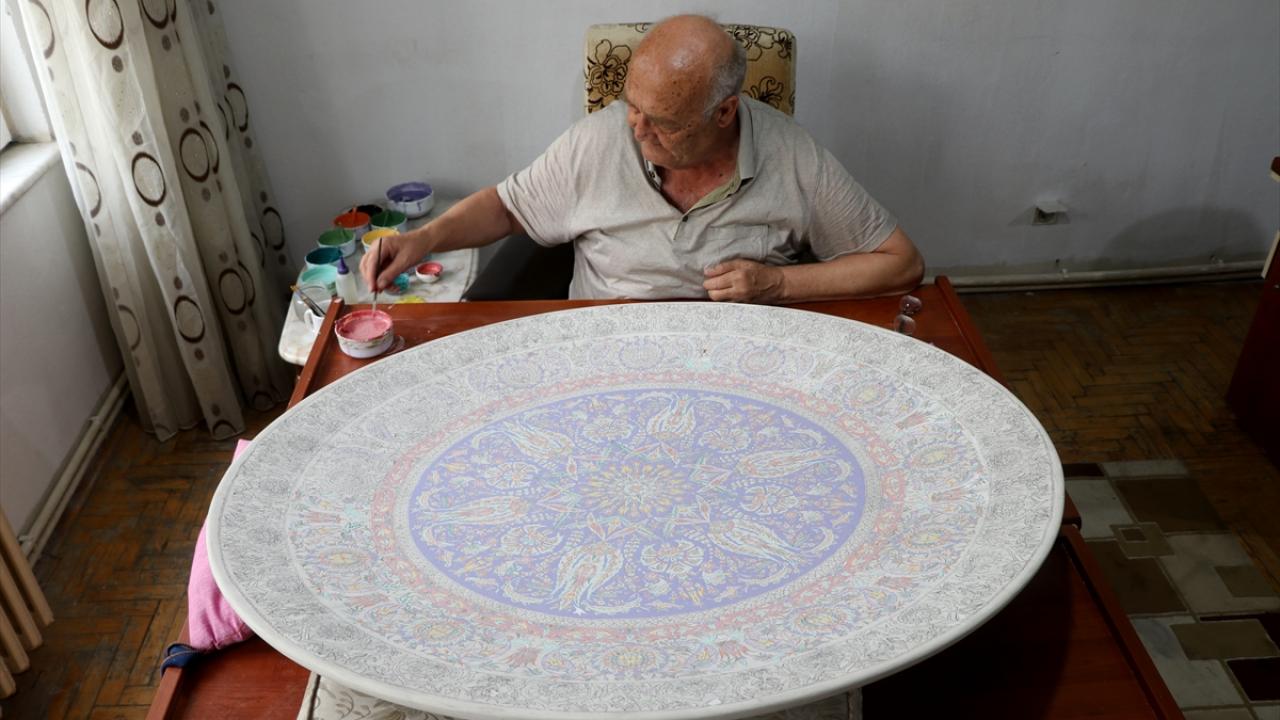 Üstünkaya, daha önce de 107 santimetrelik çini tabak yaptığını, motiflerle bezediği 120 santimetre çapındaki bu eseriyle kendi rekorunu kırdığını sözlerine ekledi.