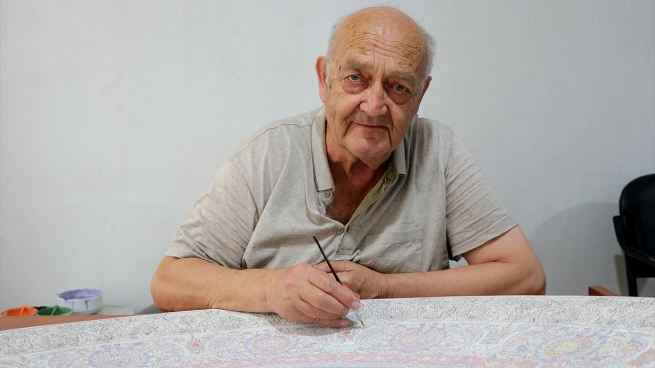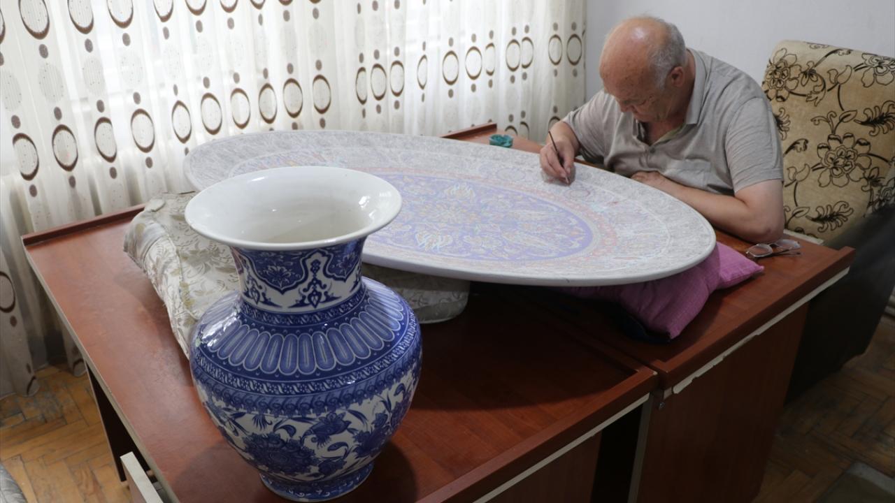Hamza Üstünkaya, yarım asrı aşkın süredir çini sanatının içinde olduğunu ve Kütahya`ya özgü desenler çizdiğini söyledi.