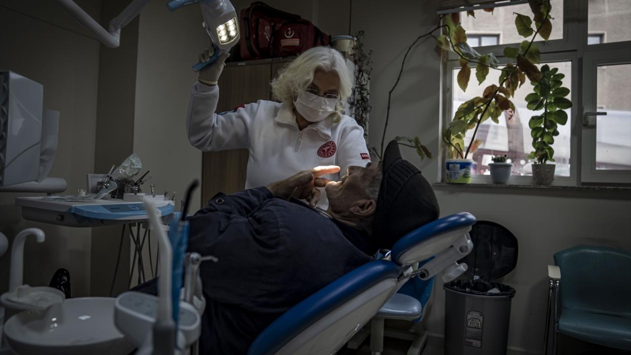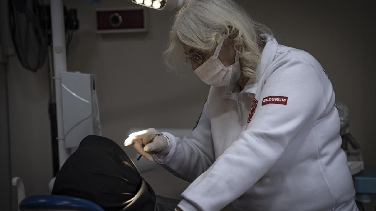 Adeta bir diş kliniğini eve götüren ekip, hastaların muayene, diş çekimi, dolgu, protez tamiri ve ağız hijyeni gibi temel diş tedavilerini özveriyle yaparak hem hasta ve yakınlarının yüzünü güldürüyor hem de dualarını alıyor.