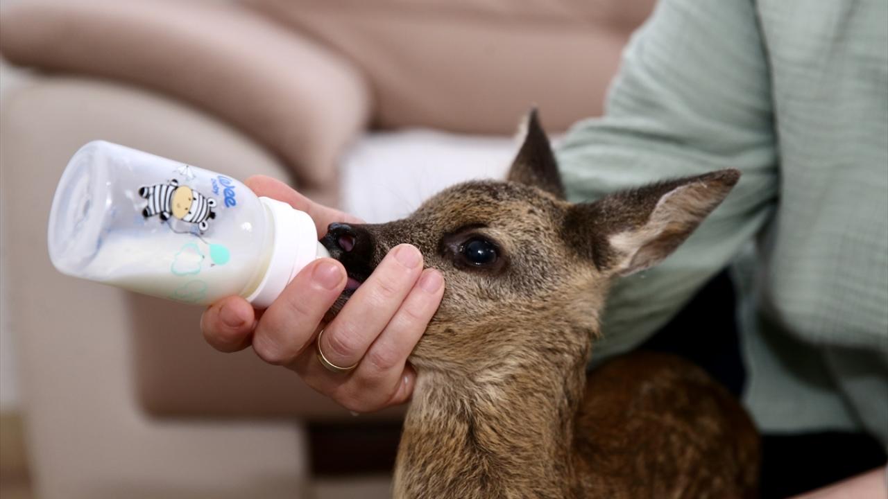 Türkyılmaz, kurum tarafından talebin uygun bulunması üzerine gönüllü bakıcısı olarak evine getirdiği karacayla adeta bebek gibi ilgileniyor.
