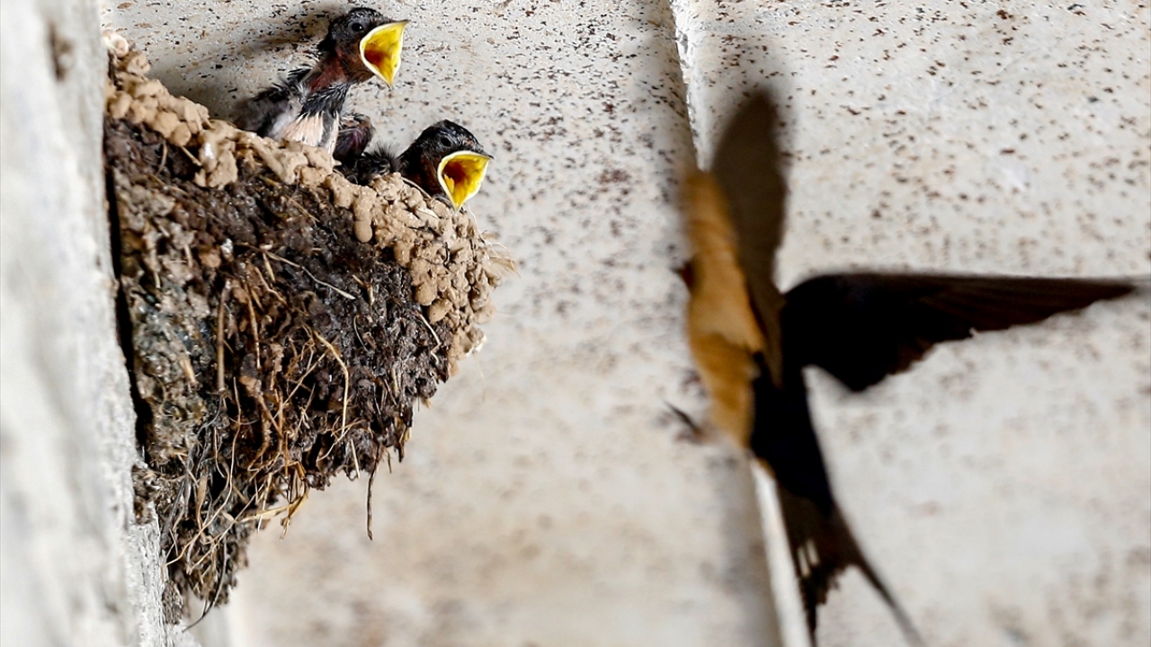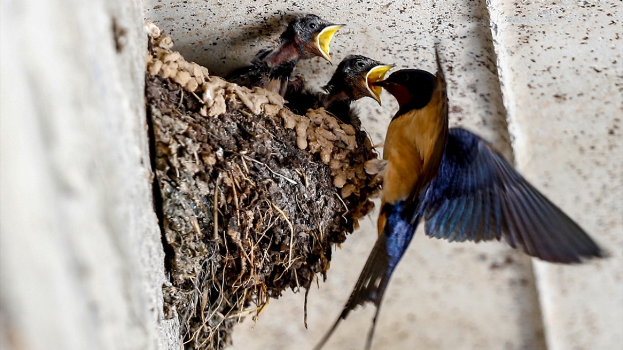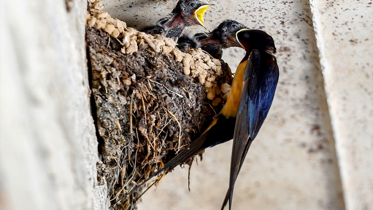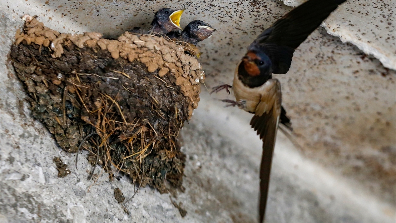 Yavru kırlangıçlara anne şefkati