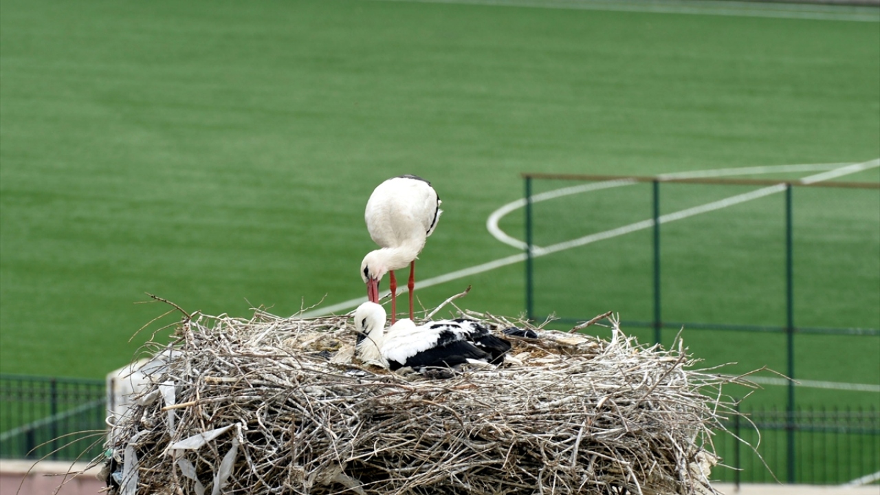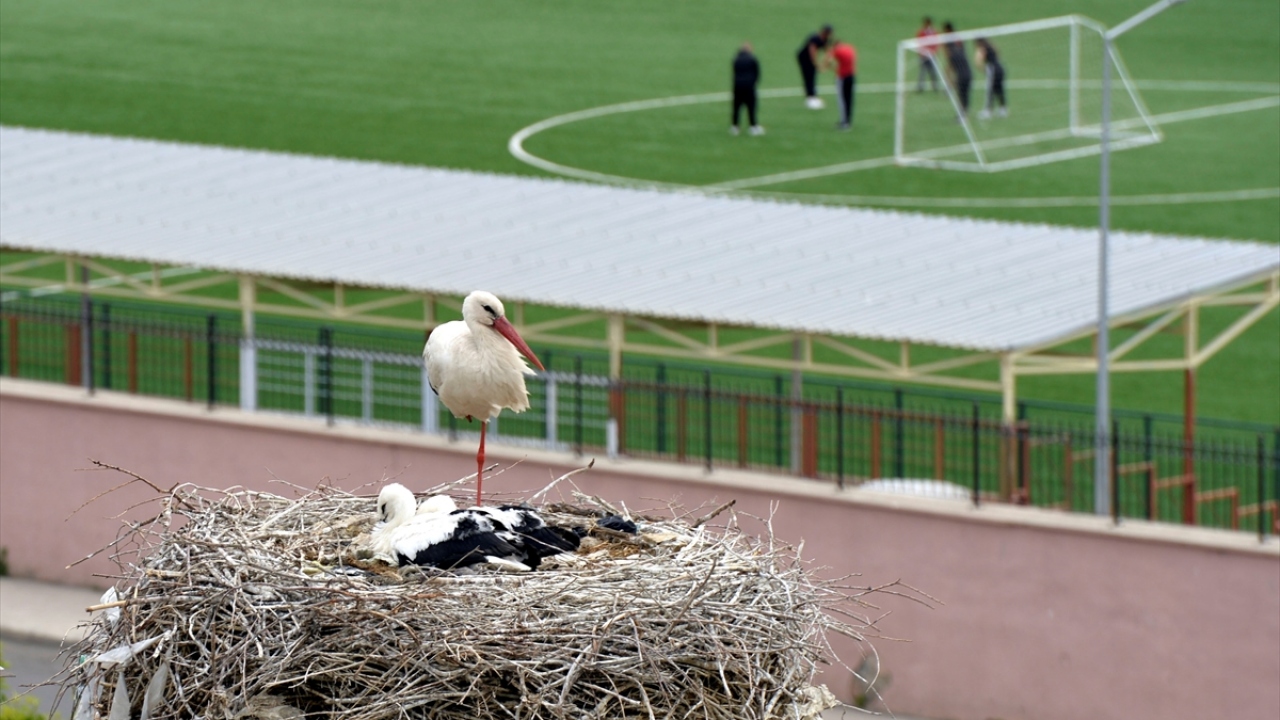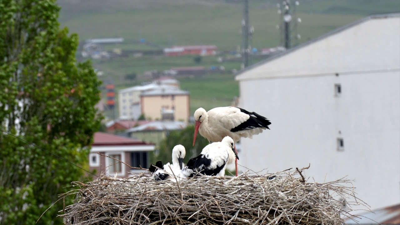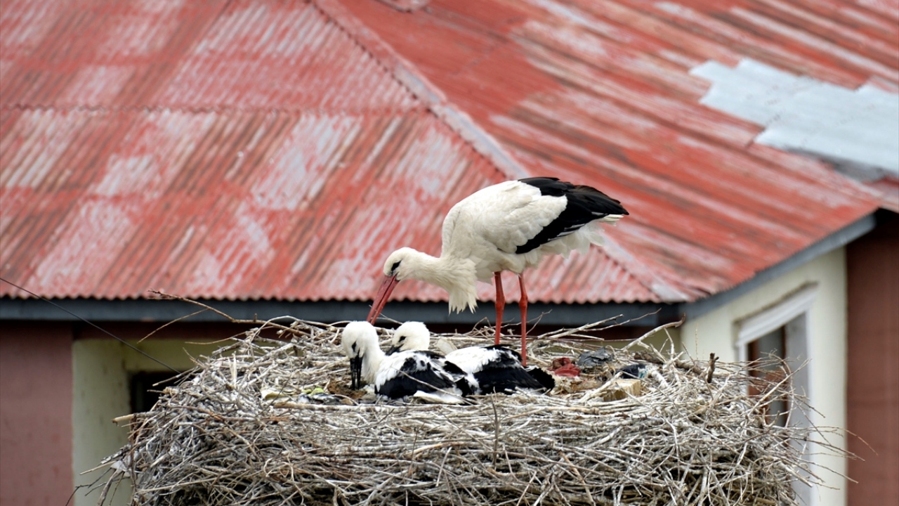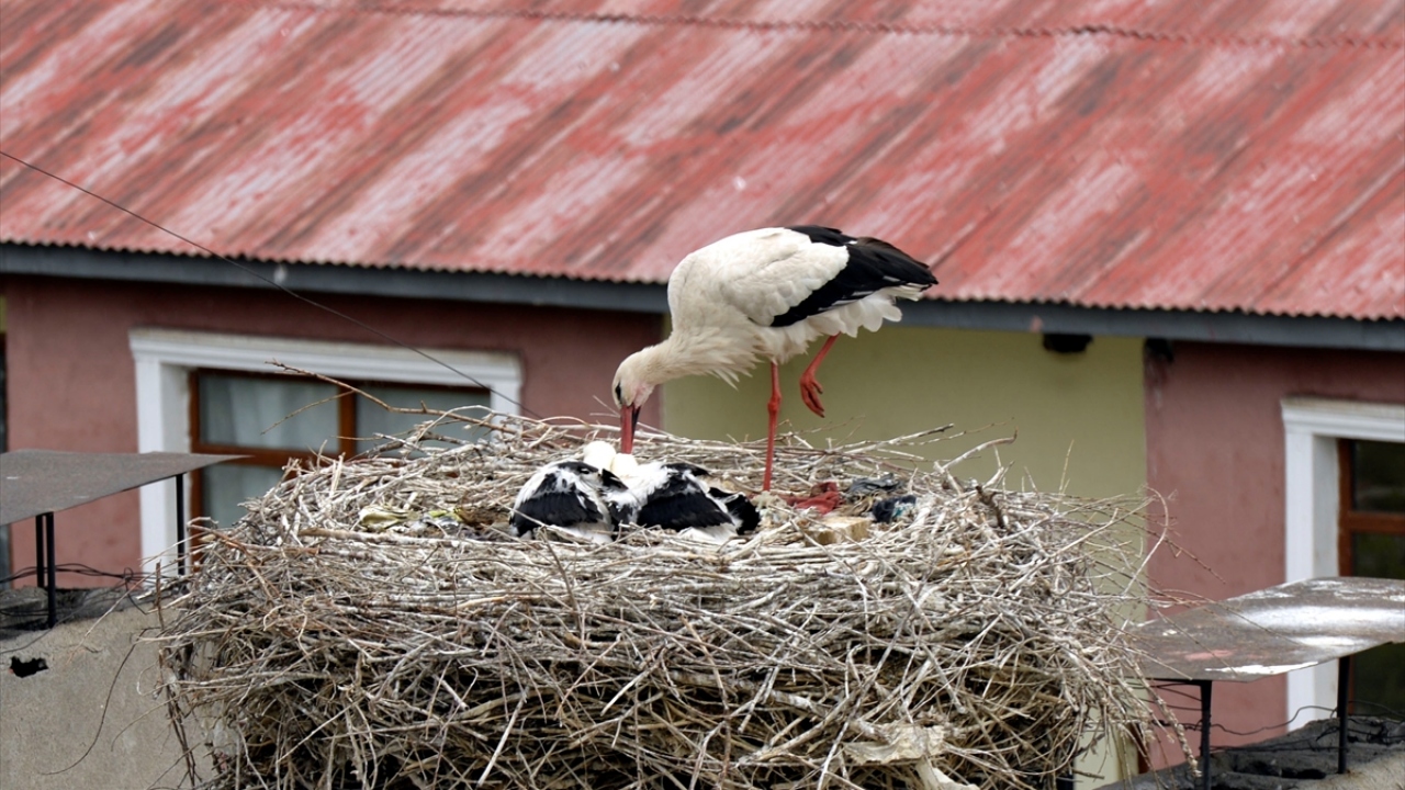 Ardahan Orman İşletme Müdürlüğü çatısında bulunan yuvadaki leylek yavrularına anneleri özenle bakıyor. Yavrular ise uçacakları günü bekliyor.