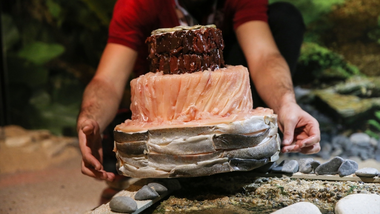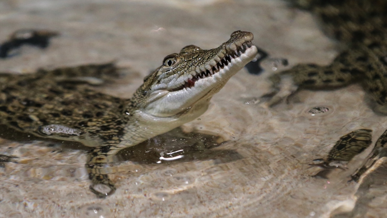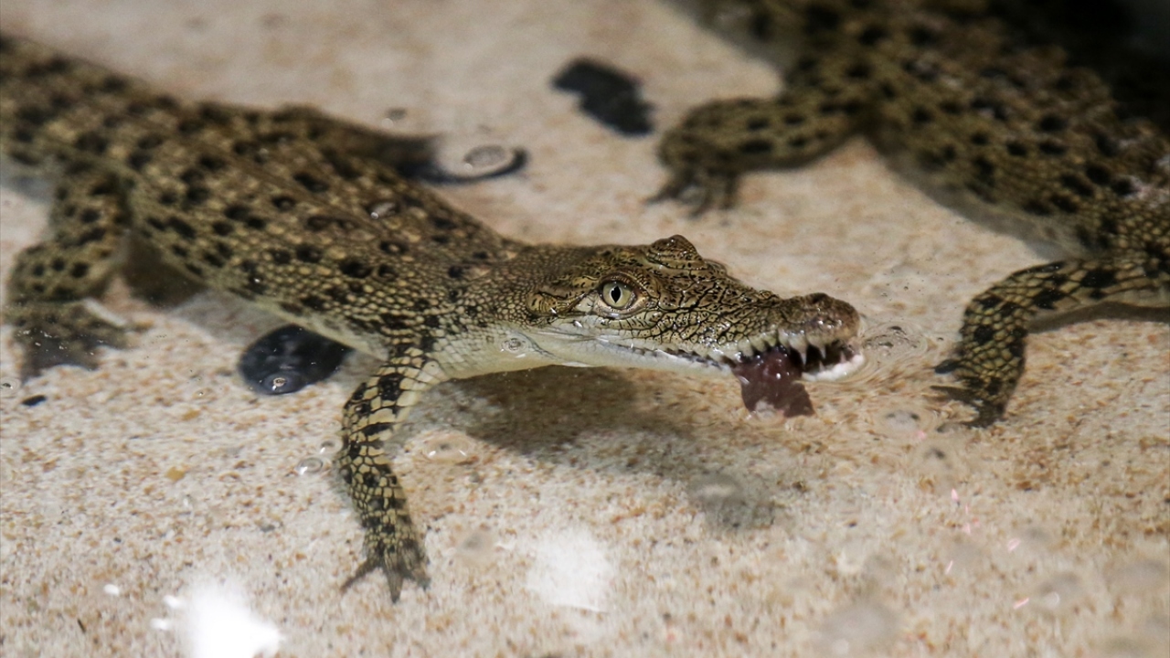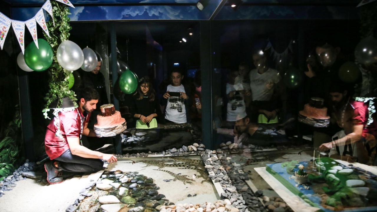 Yavru timsahlara, kendileri için özel olarak balıktan hazırlanan doğum günü pastası yem olarak verildi.