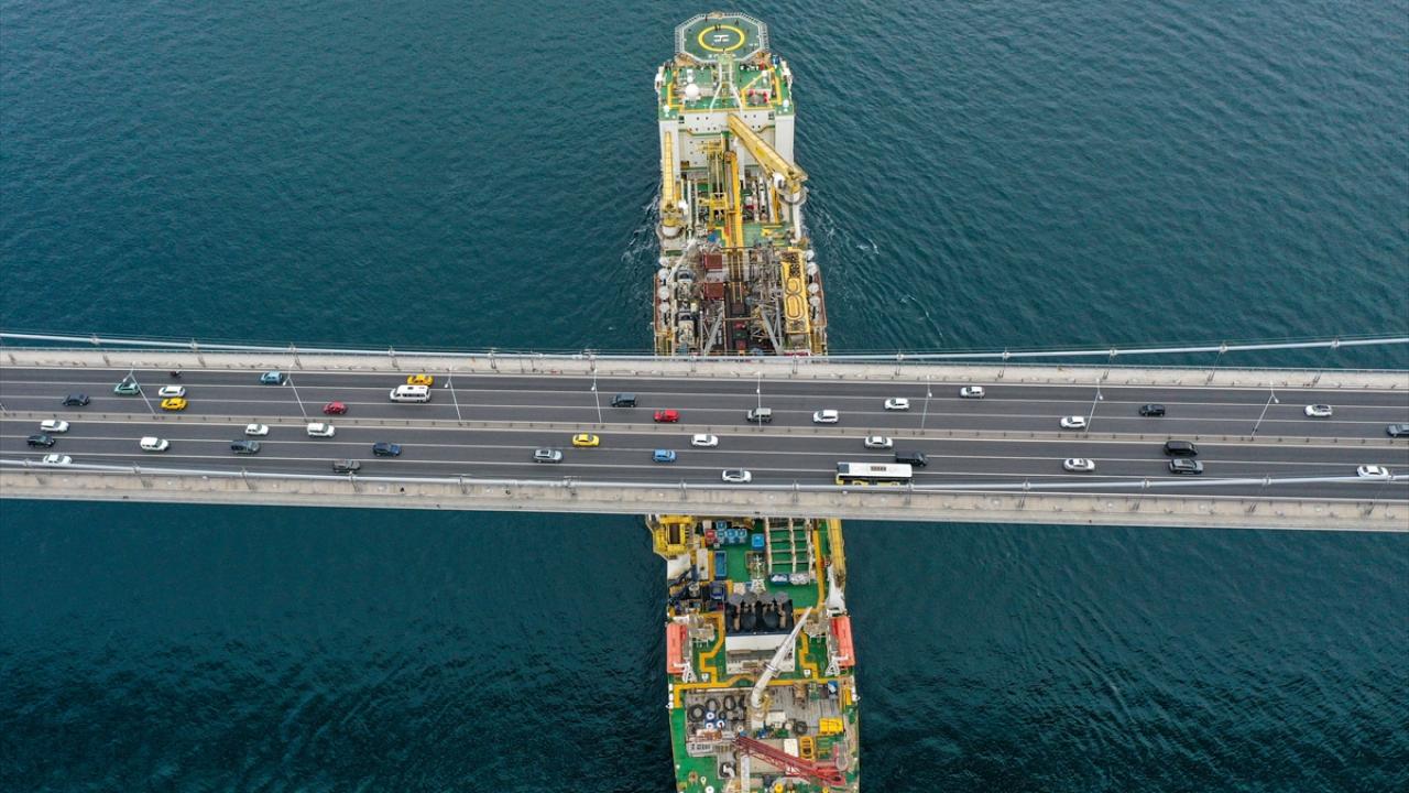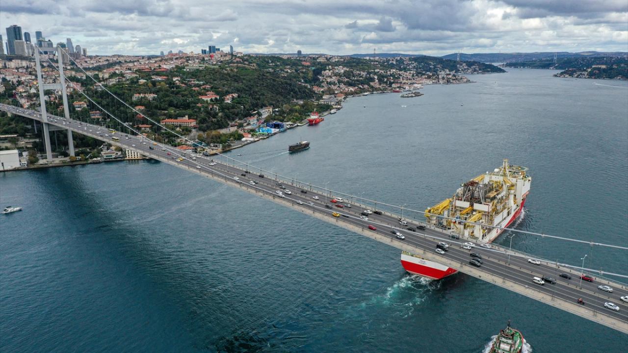 Sondaj gemisinin İstanbul Boğazı`ndan geçişi havadan da görüntülendi.